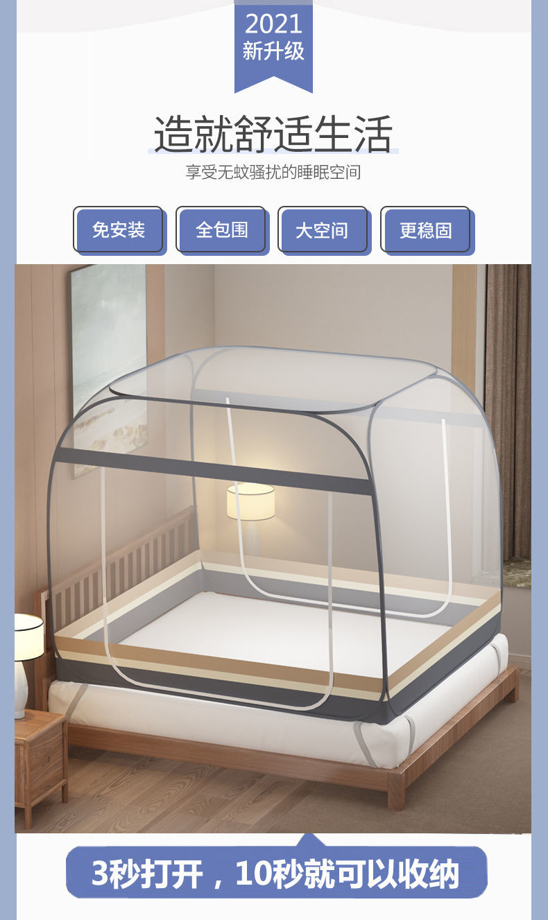 蒙古包蚊帐,升级加大空间,细密网纱,360度防蚊,加固防滑带,支架固定防摔。【送运费险!免安装】