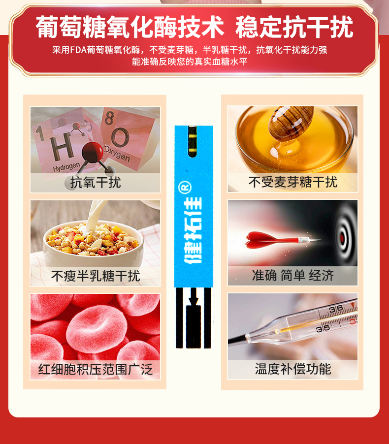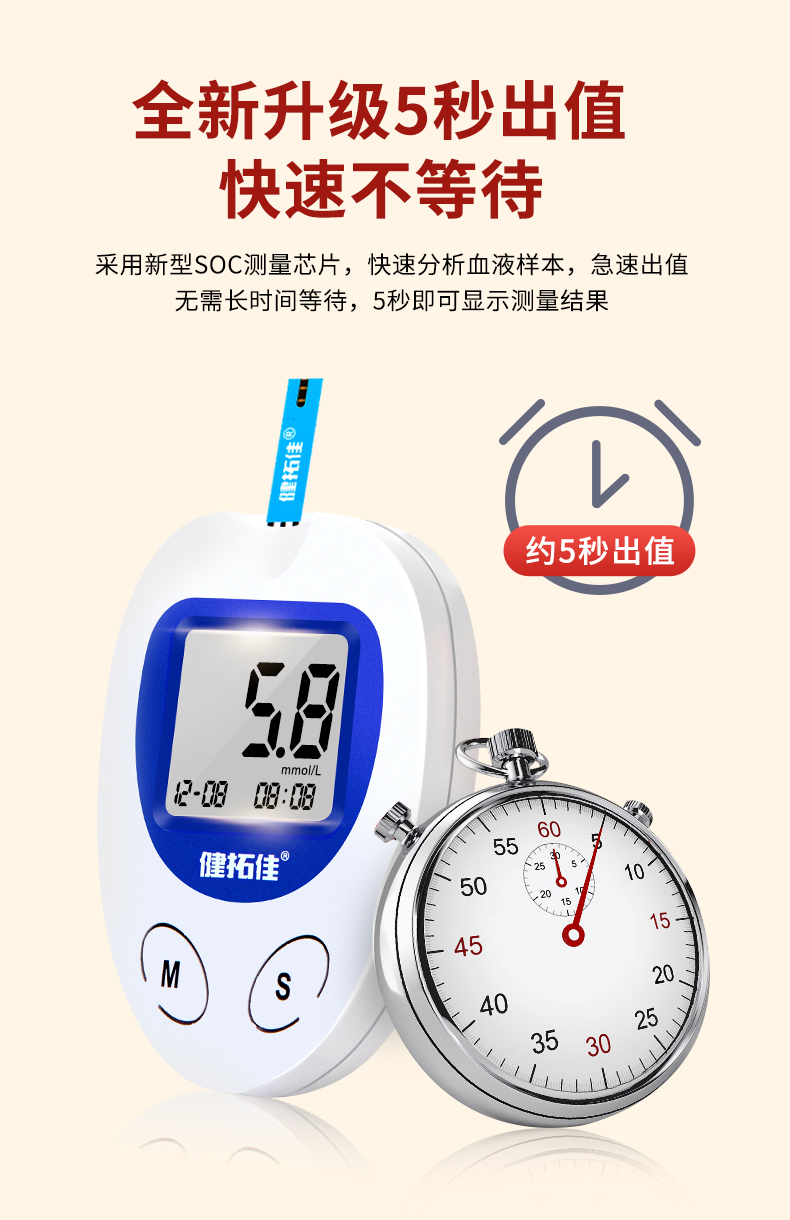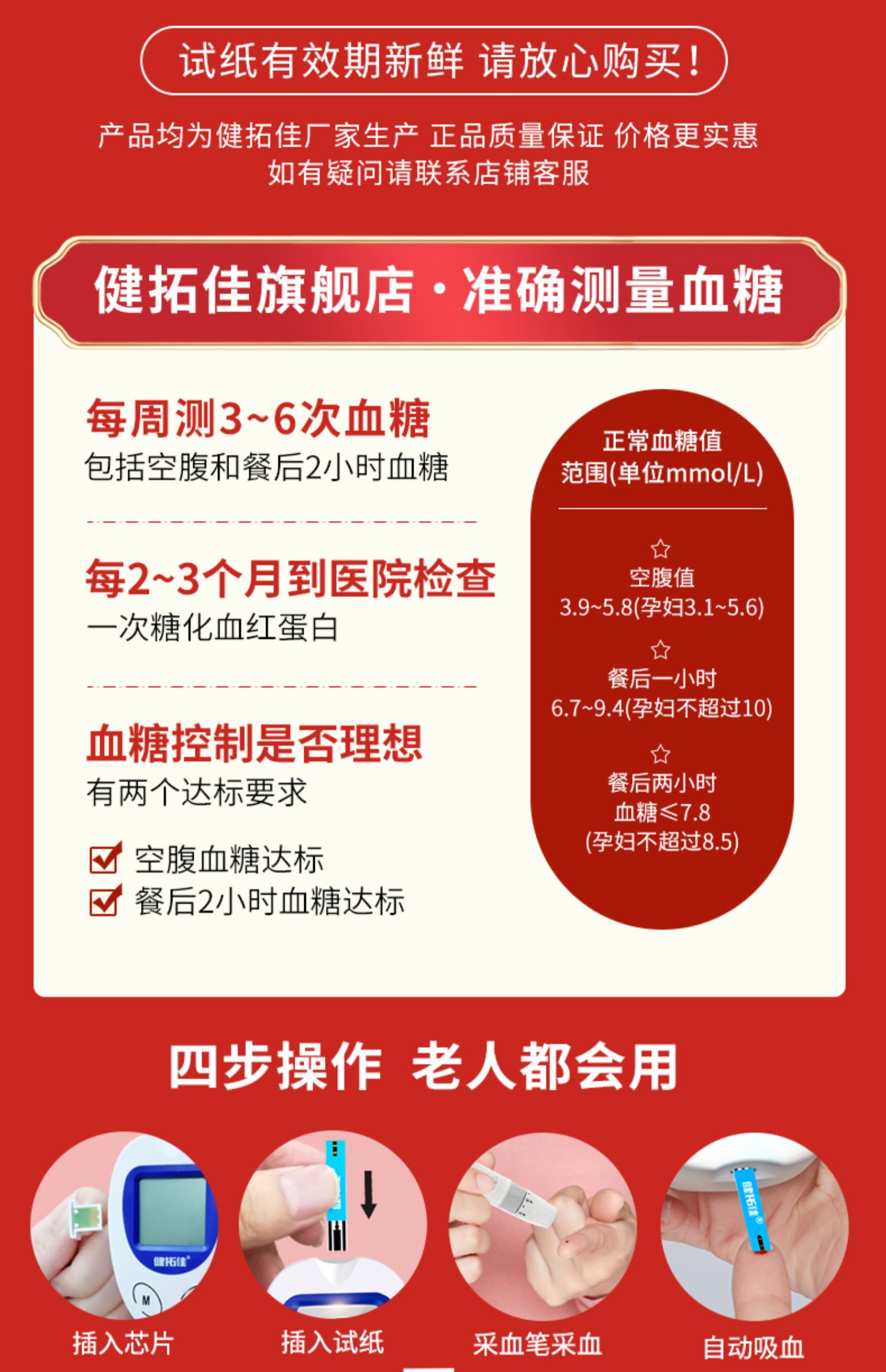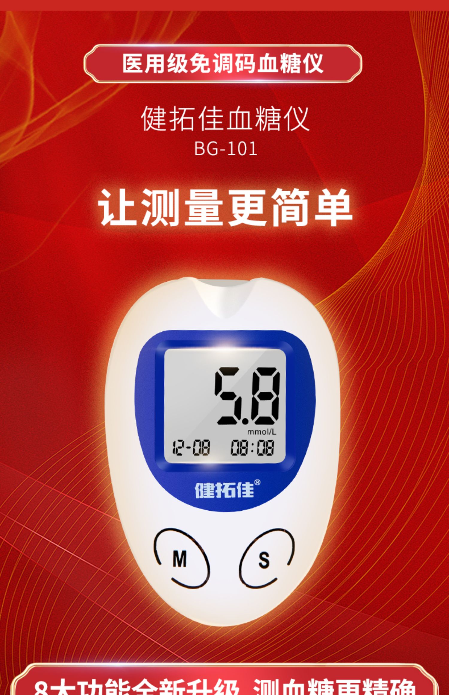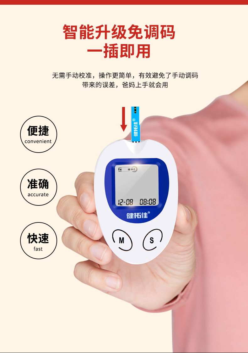 【20年专注医疗器械,权威质检+国际认证】健拓佳血糖仪+50试纸+50采血针+50片酒精棉片,私人血糖管家,微量采血即插即用,360组存储数据,大显屏幕,视力不佳的老人,也可以自己测量!【赠运费险】