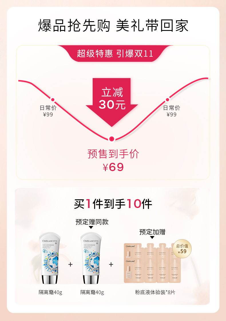 买1送1发两件!水润隔离霜妆前打底保湿遮瑕