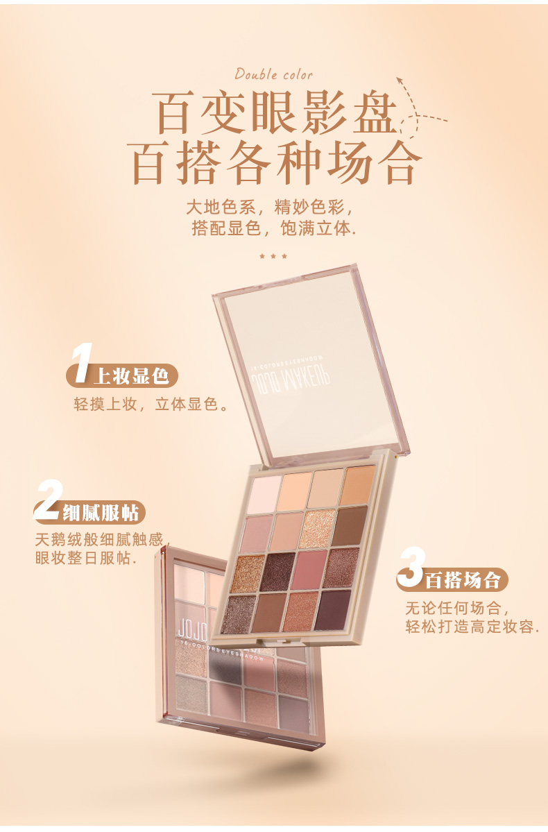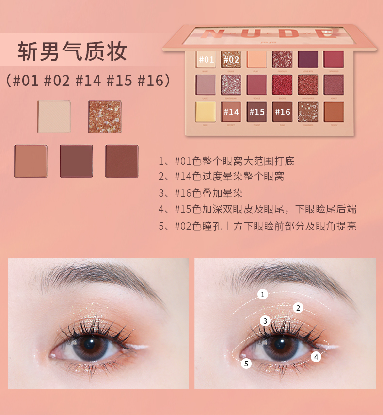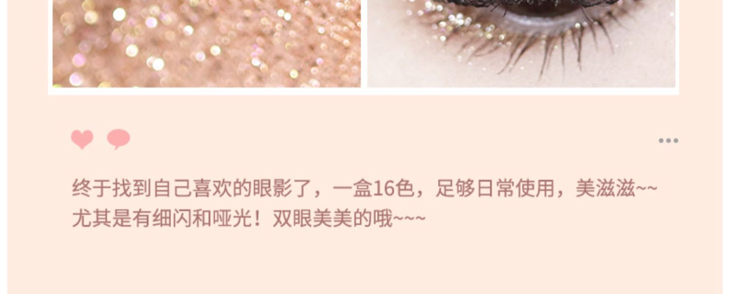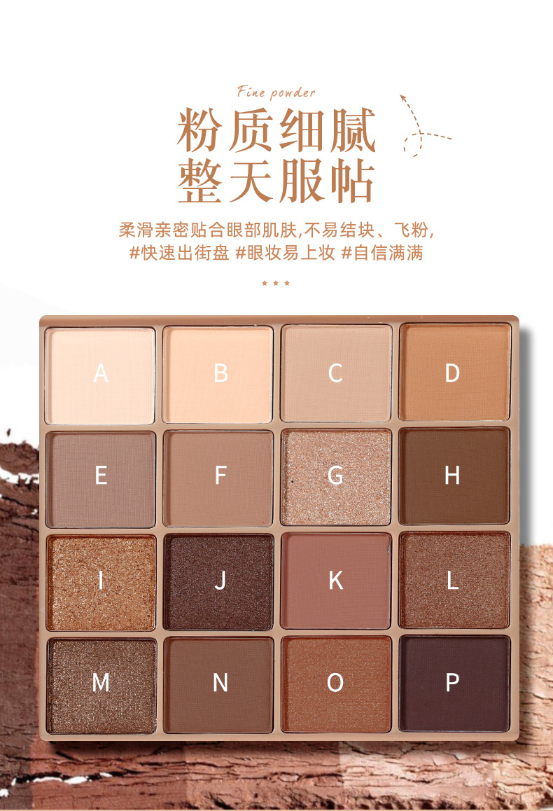 吸引我的是你的双眸,大地色系16色眼影盘,立体显色,一秒动人,轻摸上妆,勾勒出精致眼妆,百变眼影盘,百搭各种场合。