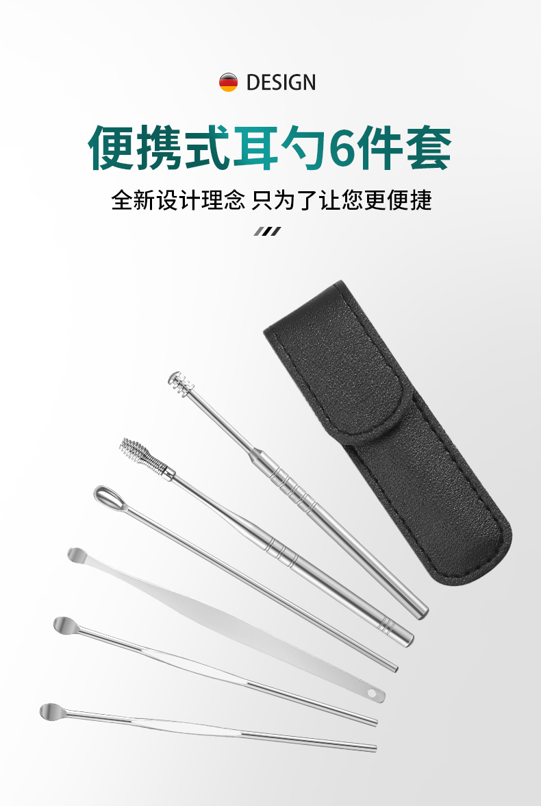 【可签到】签到!华优全套采耳掏耳勺神器6件套!多色可选!不锈钢材质,能水洗,可循环使用,配有收纳包!小耳勺,大讲究!3倍清洁效果,全面护理耳道!掏、扒、旋、按摩等一步到位,掏耳按摩两不误~