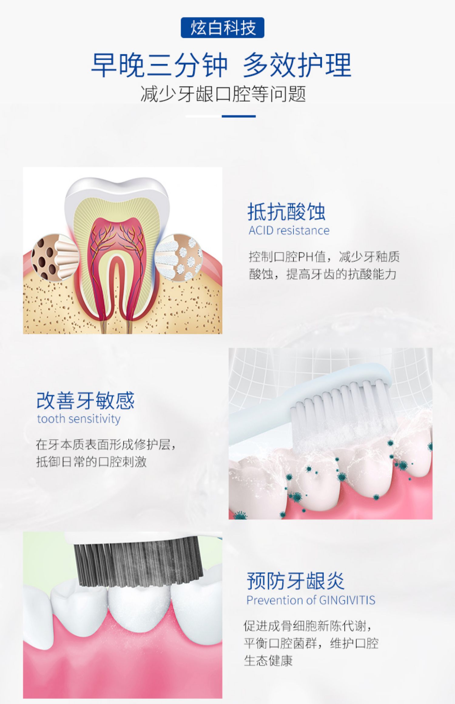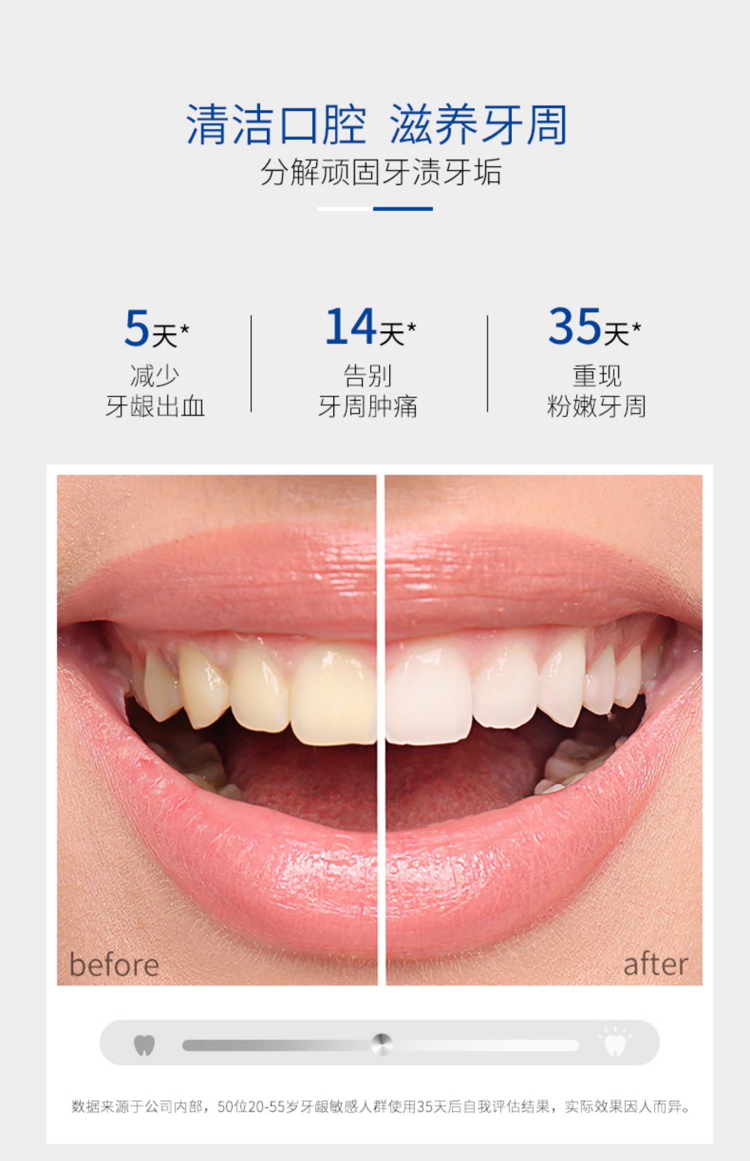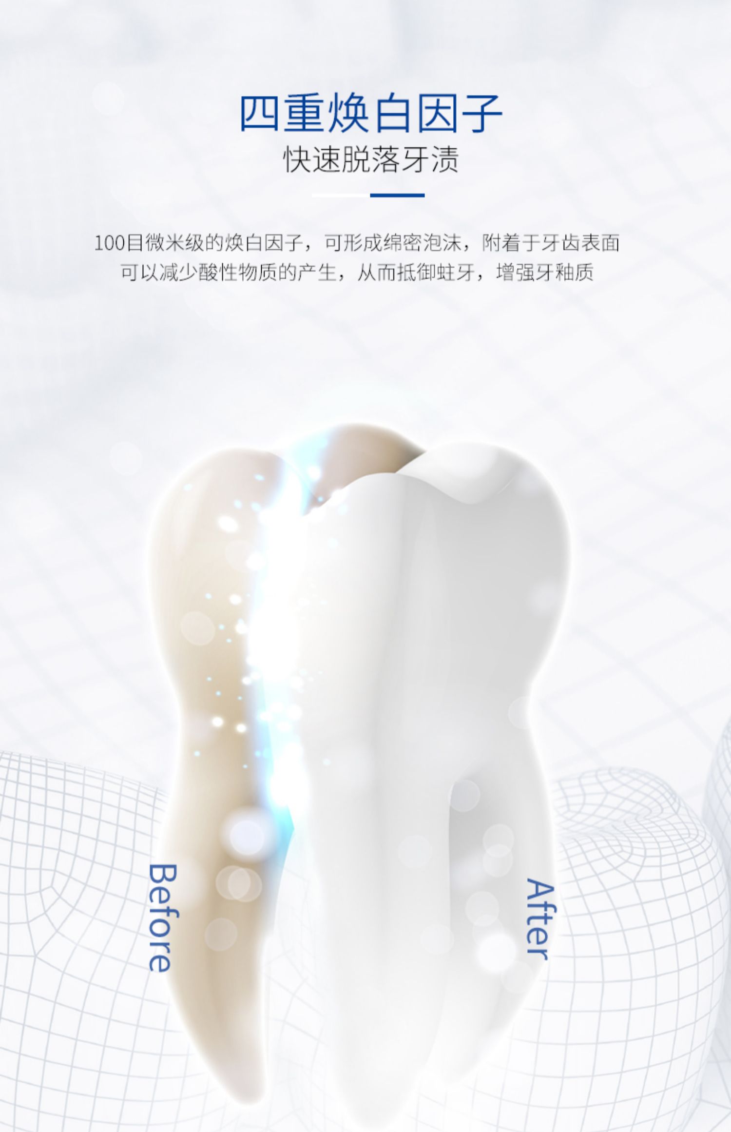 添加细腻珍珠提取物,微粒粉末,去渍更呵护牙釉质,清洁触达牙缝,减少牙菌斑、减轻牙渍、清新口气,让您放心应对露齿尴尬!