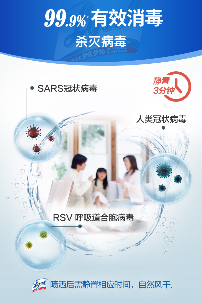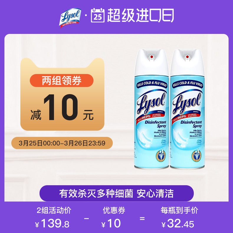 美国Lysol消毒喷雾家用杀菌清新剂340g2瓶