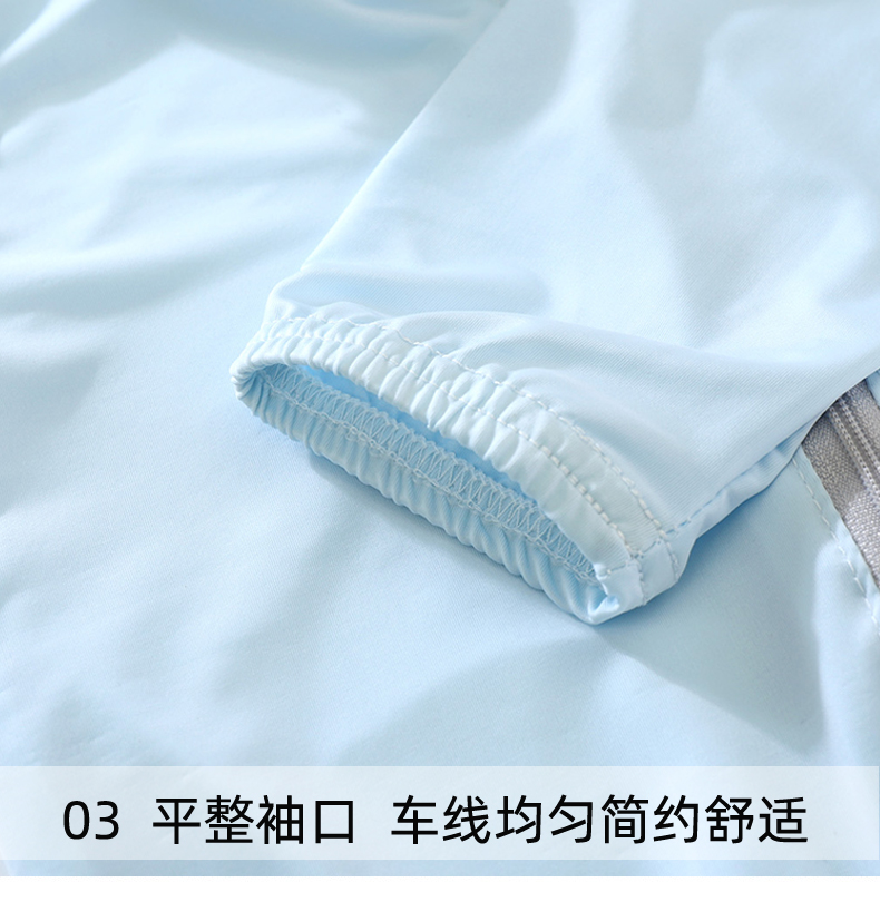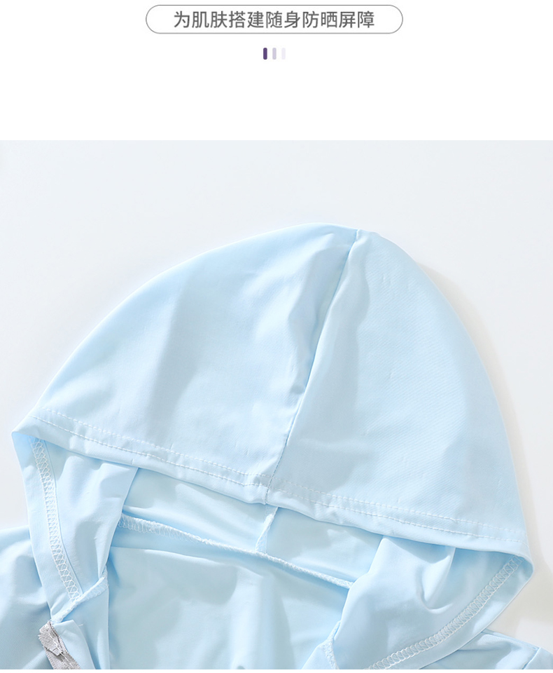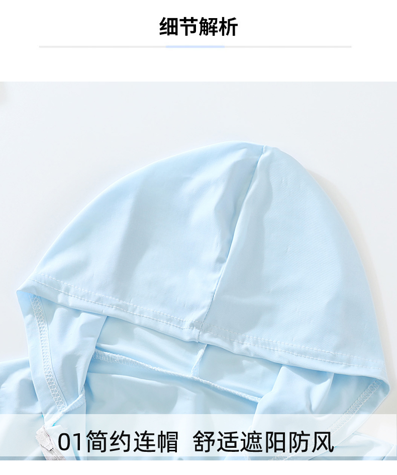 专业防晒面料,防紫外线冰丝防晒面料,更冰爽顺滑,连帽设计,遮阳效果更佳,有效抵挡98%辐射光线,夏季出游必备!