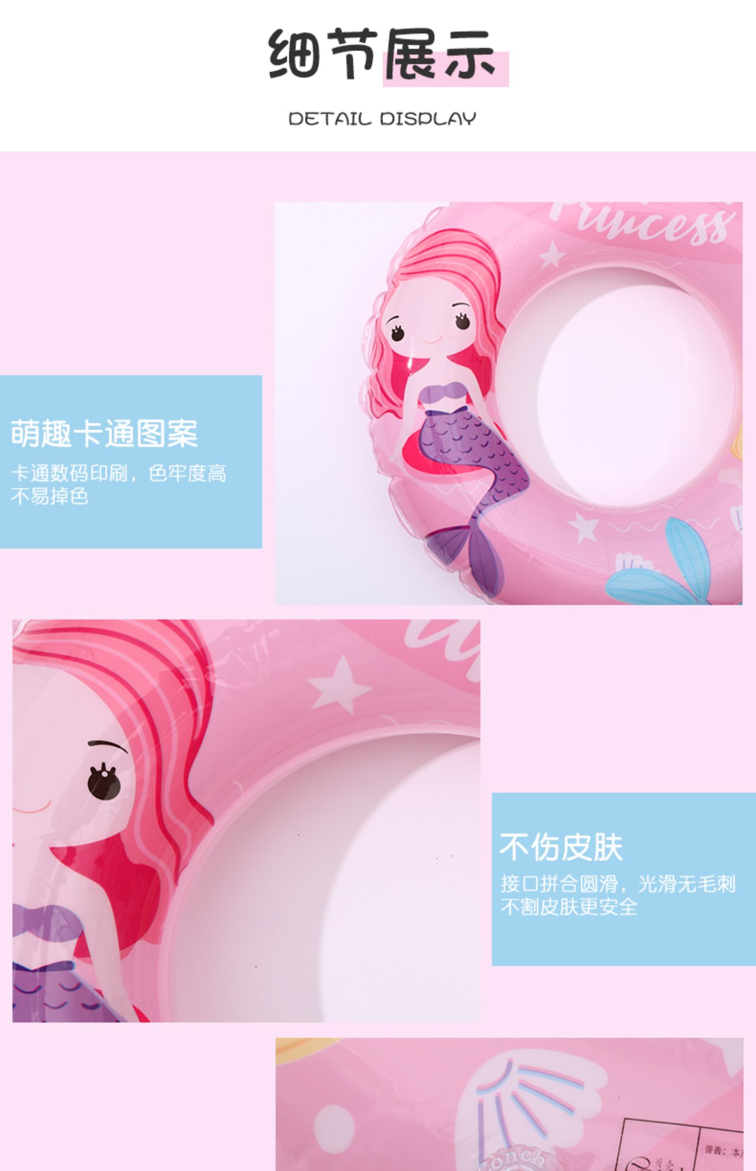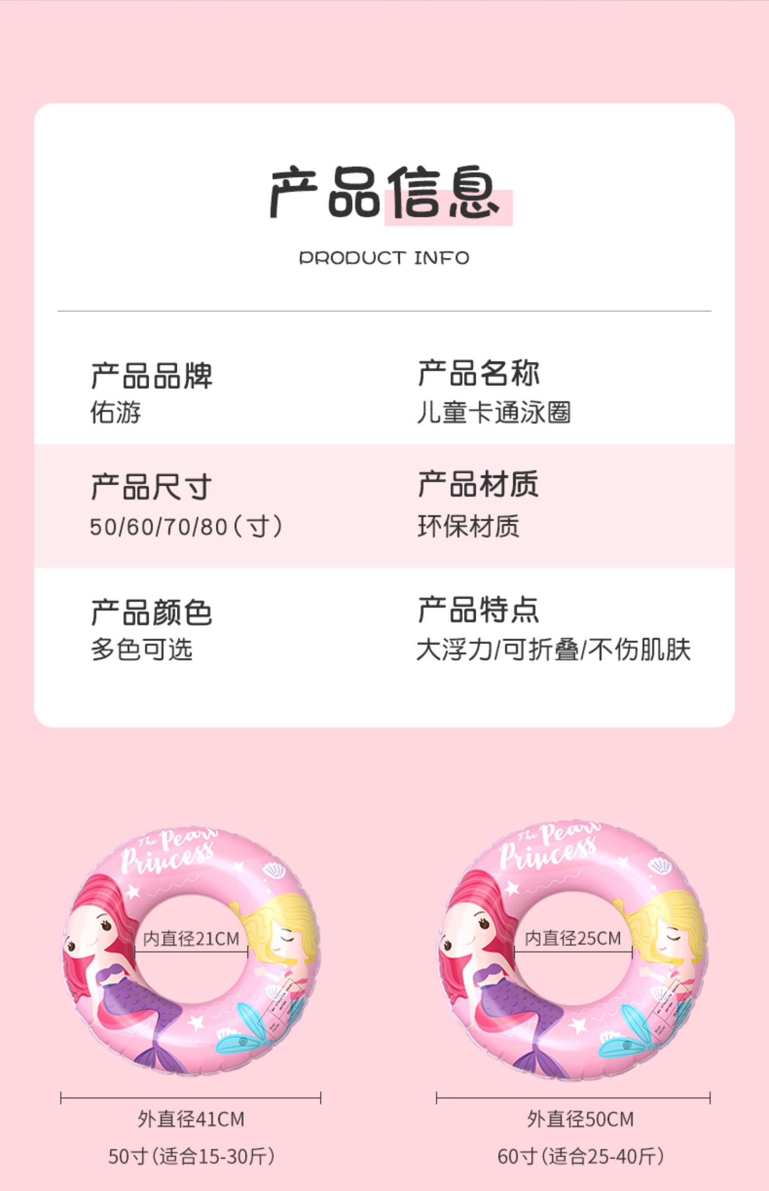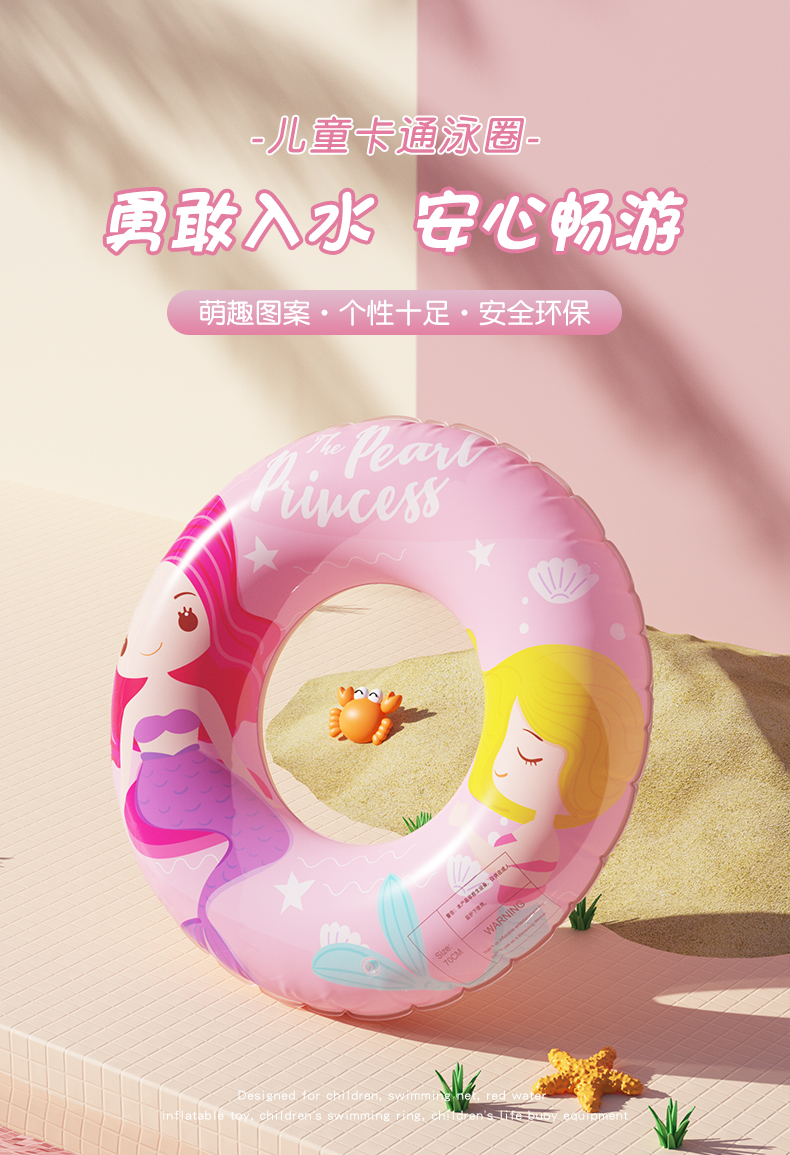 卡通儿童泳圈,萌趣图案,个性十足,宝宝爱不释手,加厚面料,科学配重,防侧翻,安全环保,让宝宝安全入水,安心畅游,