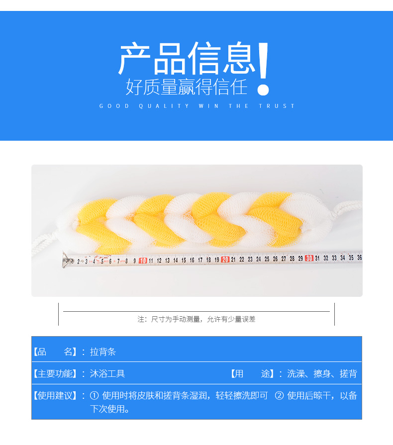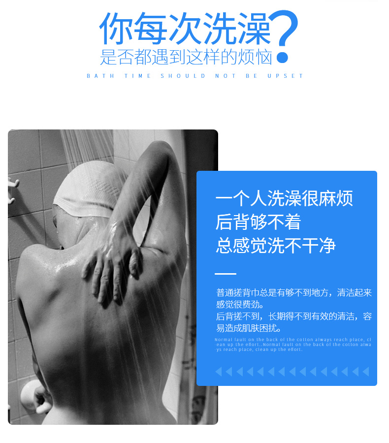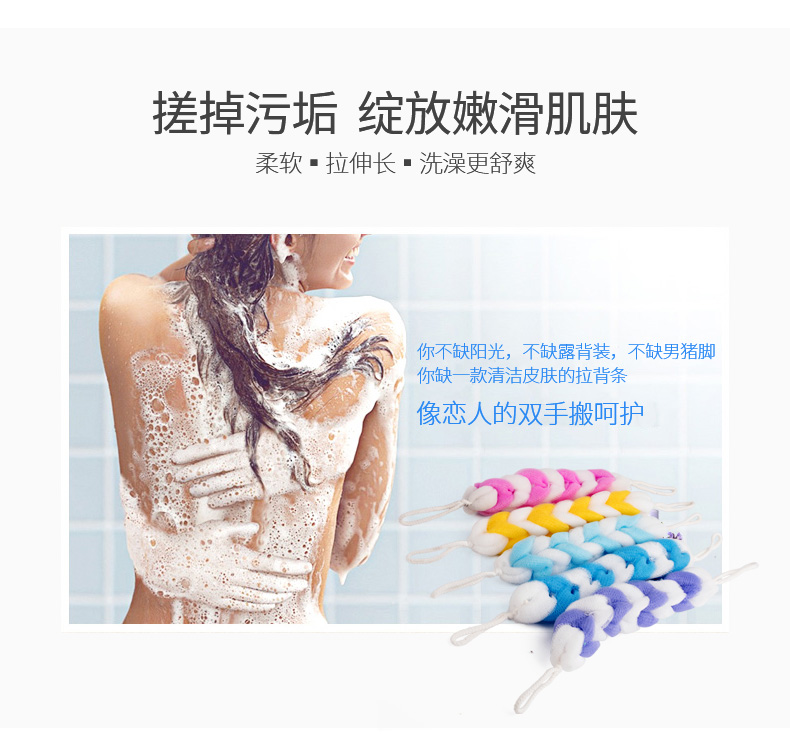双面后背去污洗澡神器,双面舒适搓澡沐浴,挂钩设计,采用全新特织面料,让沐浴变的更舒适。