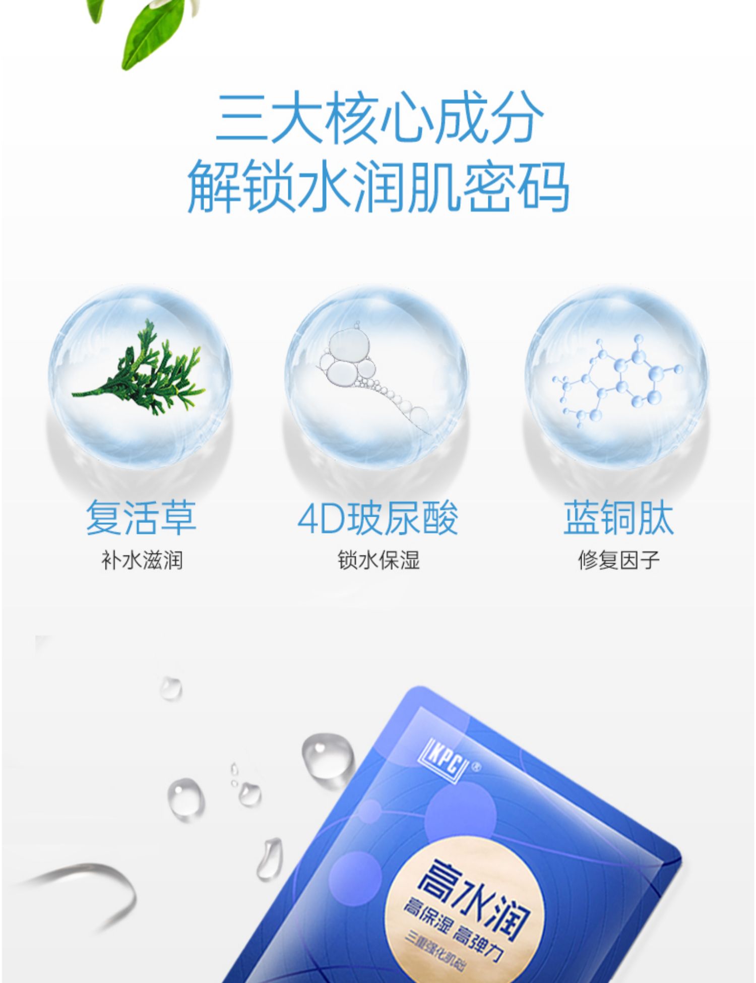 【切记拍3件,昆药集团上市公司】KPC复活草水光面膜,4D玻尿酸,高纯蓝铜肽原液、韩国马齿苋原产提取物,0添加,强补水,抗衰老,仙女们的优选款~
