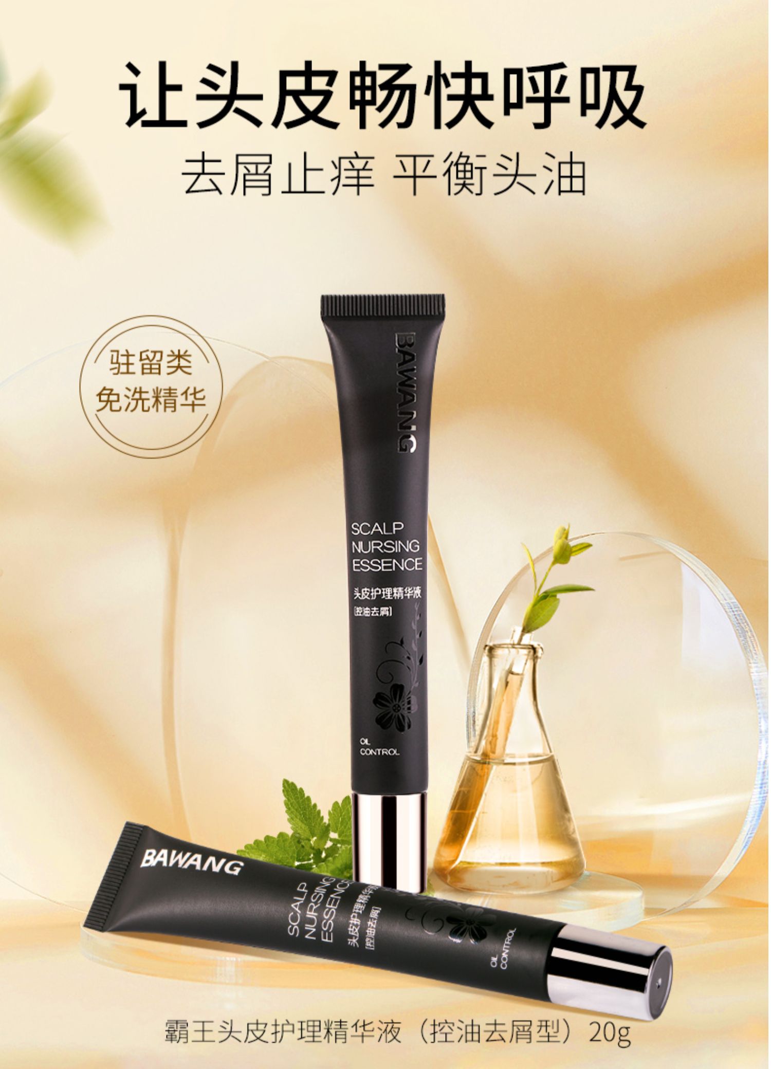 霸王新品头皮护理精华液控油20ml,控油去屑头皮护理精华液,去屑,止痒,控油三合一,深层清洁,净化毛囊,4种中草药提取液,多效清洁养护~
