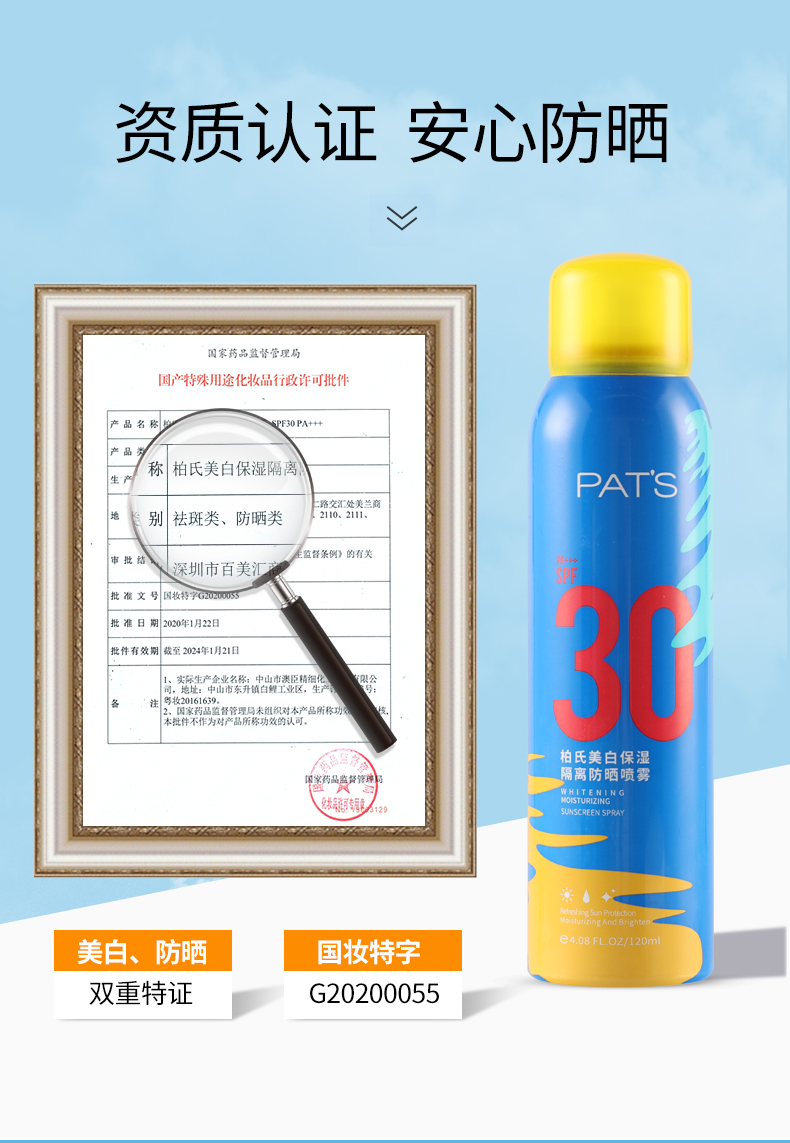 柏氏防晒喷雾霜透明清爽不油腻30+