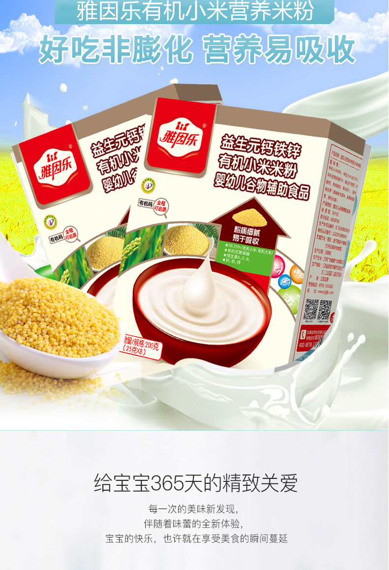 【1罐9折,2罐7.8折,4罐7折】【雅因乐】5种口味!婴儿米粉宝宝营养辅食,雅因乐钙铁锌米粉,优质原料,营养丰富,易吸收,口感清香。