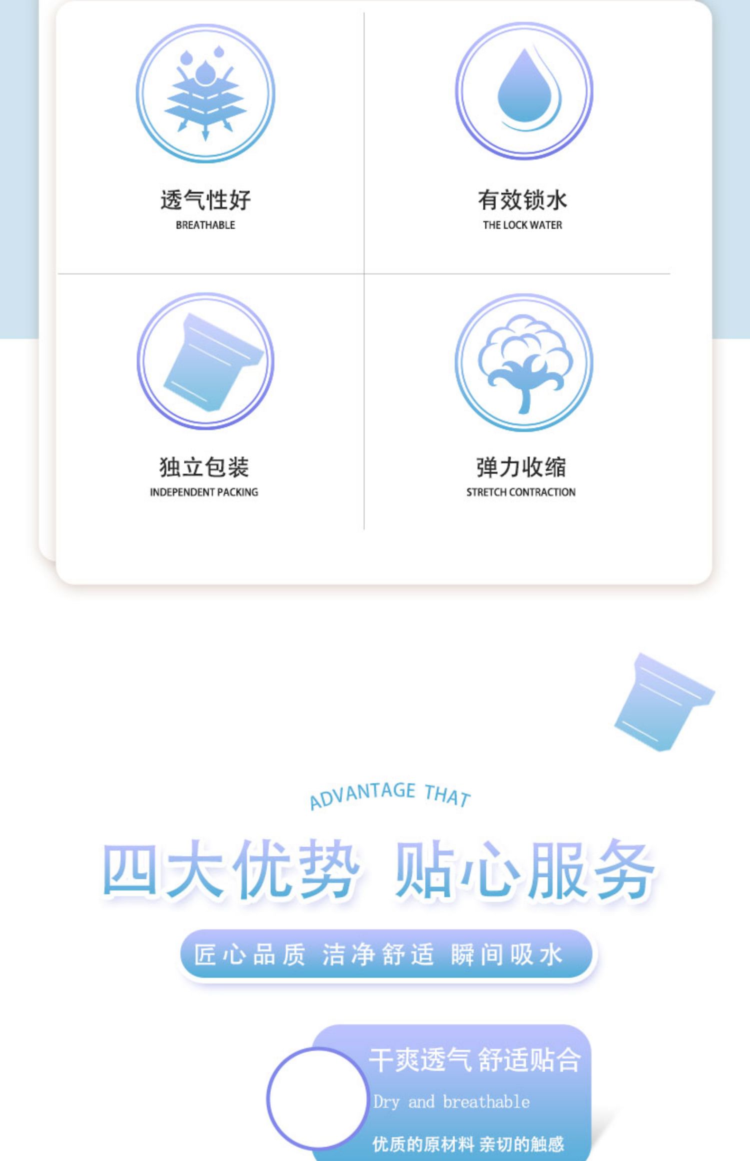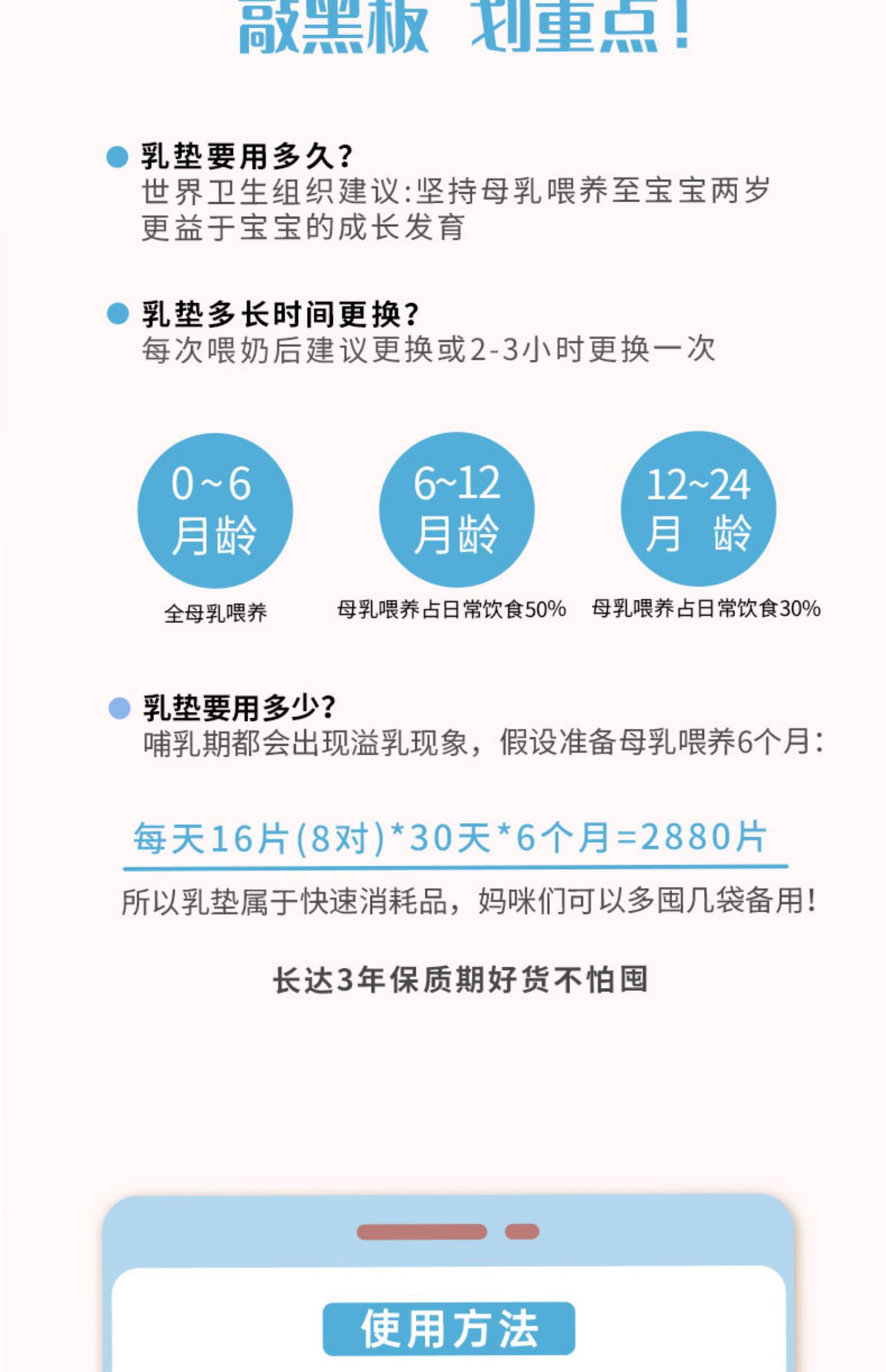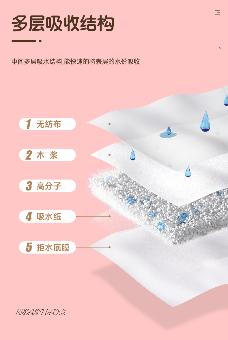 弹力收缩,柔软舒适,透气性好,强力锁水,独立包装,多条导流槽,无死角锁水导流迅速均散乳汁不侧漏,双层背胶,更好的贴合在内衣上,内部强力吸水高分子,快速吸收溢出的奶汁,无荧光剂,给您自然纯粹的贴心呵护~
