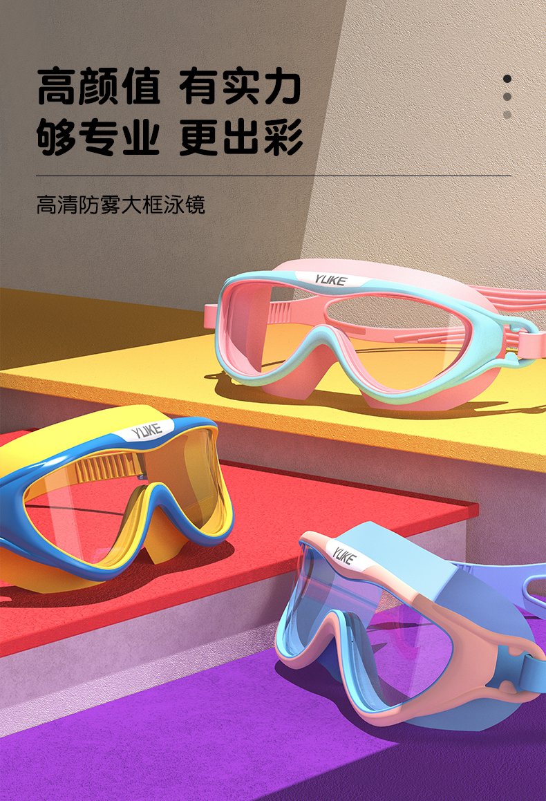 大框近视高清防水防雾游泳眼镜,硅胶材质,佩戴舒适,视野开阔男女成人潜水泳帽套装备,视野开阔,多色可选,潮流廓形,亲肤贴合!