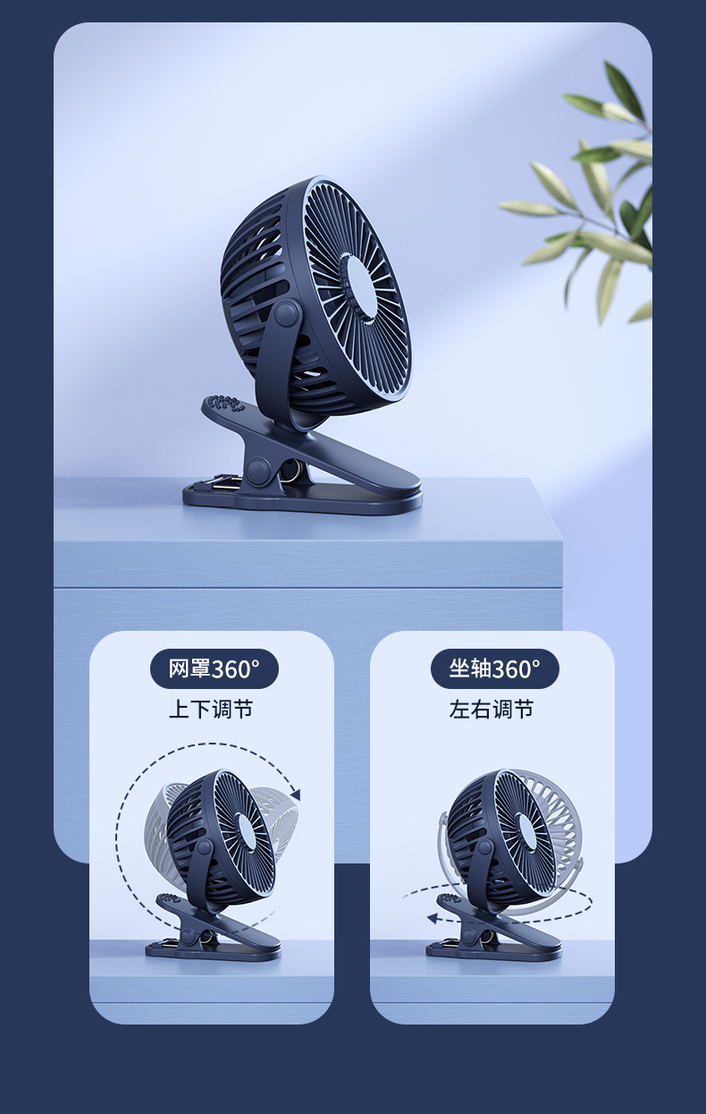 充电款~大电池~桌面usb夹子静音小风扇,可立可夹可挂,720度旋转,三挡风速,大风力够强劲。【赠运费险】
