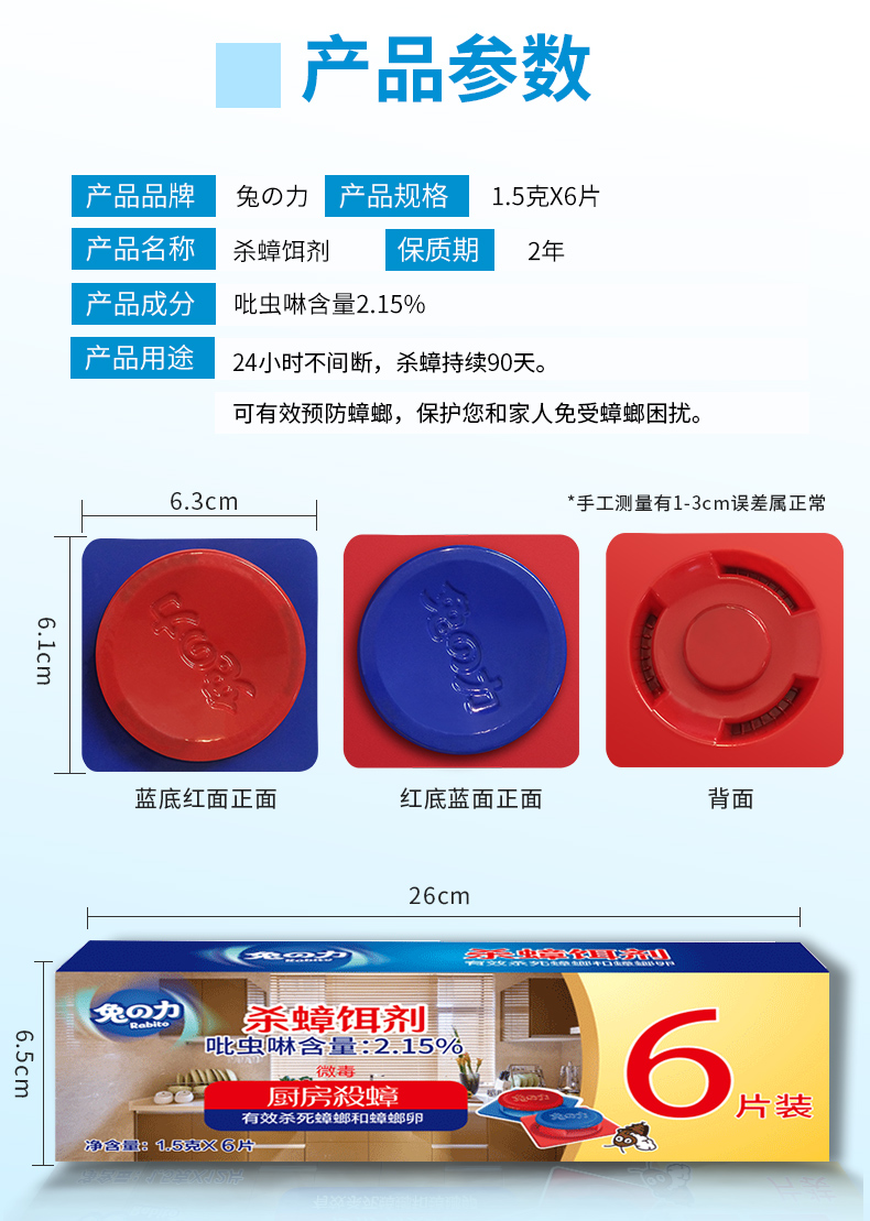 【兔の力】蟑螂一窝端胶饵6片装,密封设计盖子封死,小孩玩耍防止宠物误食,添加蟑螂喜爱的引诱剂让蟑螂无法拒绝达到快速取食,安全设计适合家用,拆开到使用,药物不粘手【退货运费险】