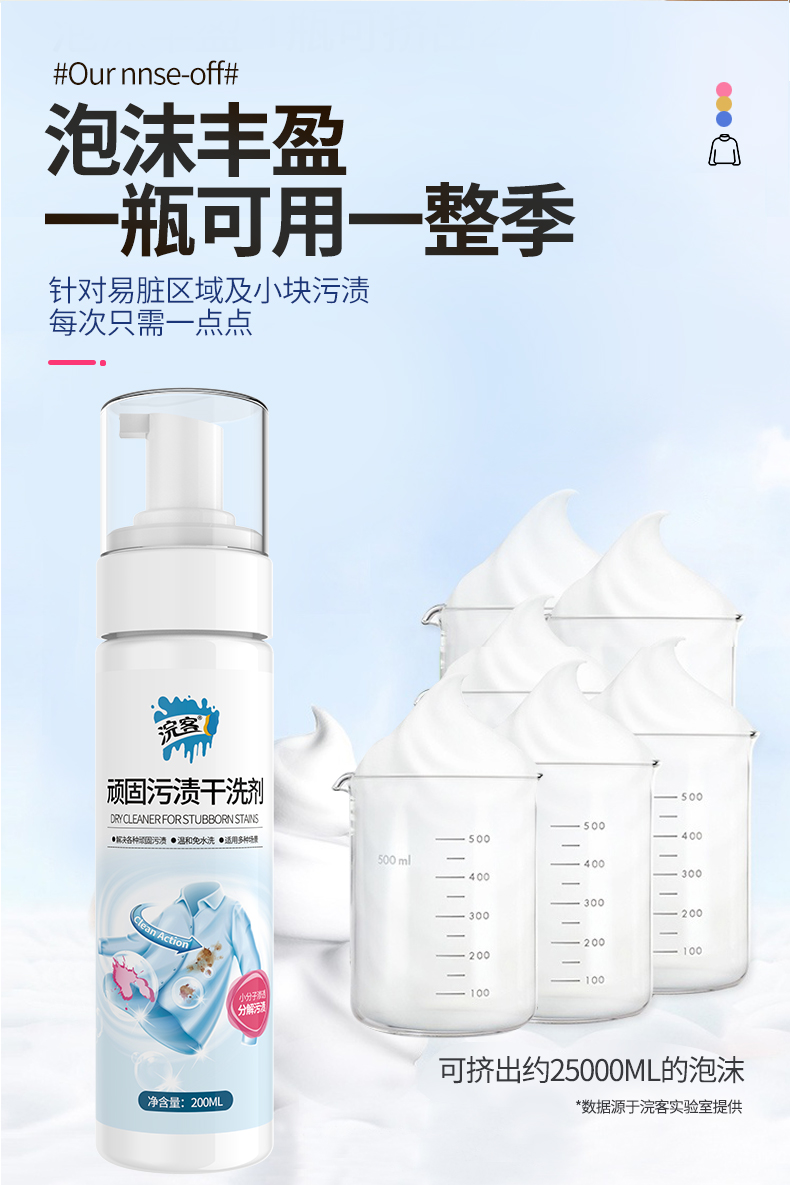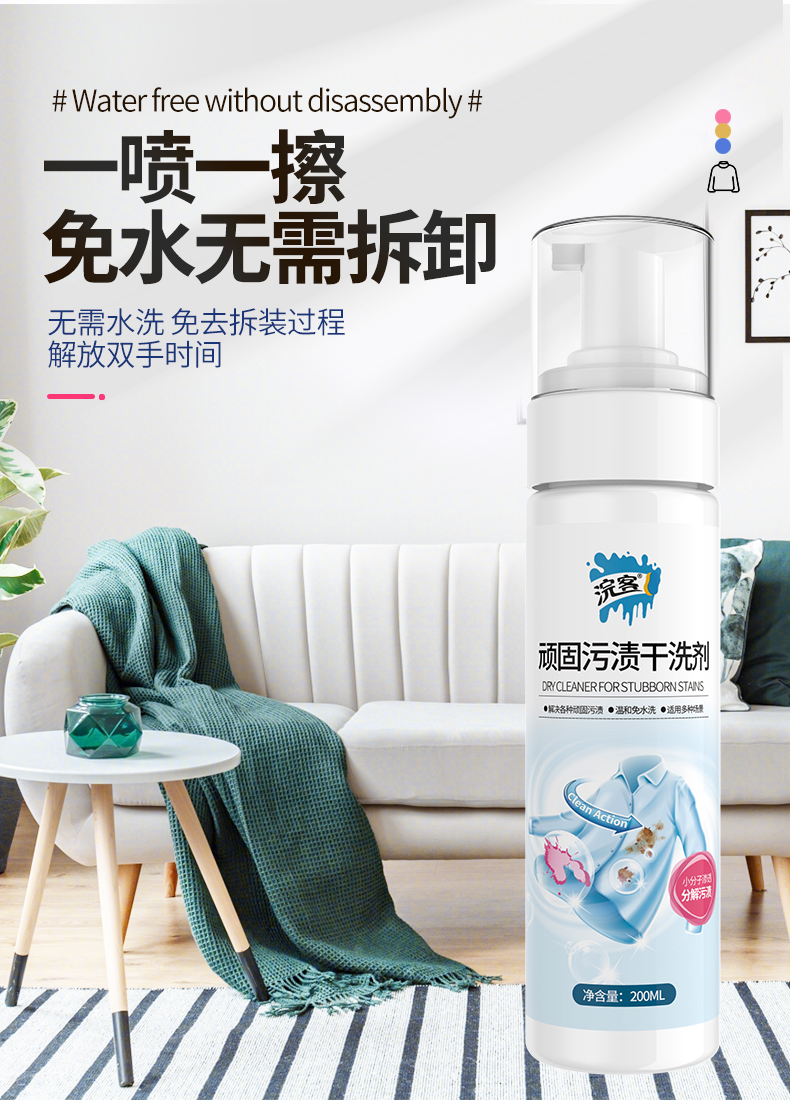 【浣客】顽固去污渍干洗剂200ml,无需水洗一喷即净,无需水洗一喷即净。洁净新时代衣物焕新生,洁净所能只为用心呵护!深层洁净,轻松瓦解污渍。一喷一擦,免水无需拆卸。