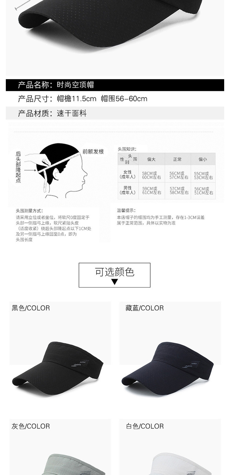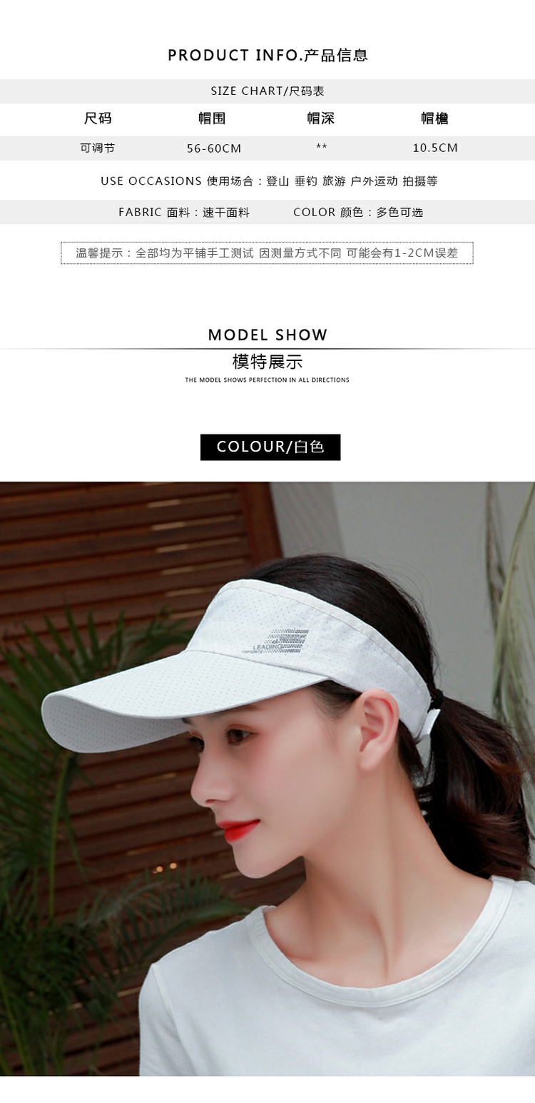 质感轻盈,佩戴舒适,镂空透气,可调节帽檐,紫外线阻隔,舒适便携,撞色印花设计,演绎时尚休闲风格。