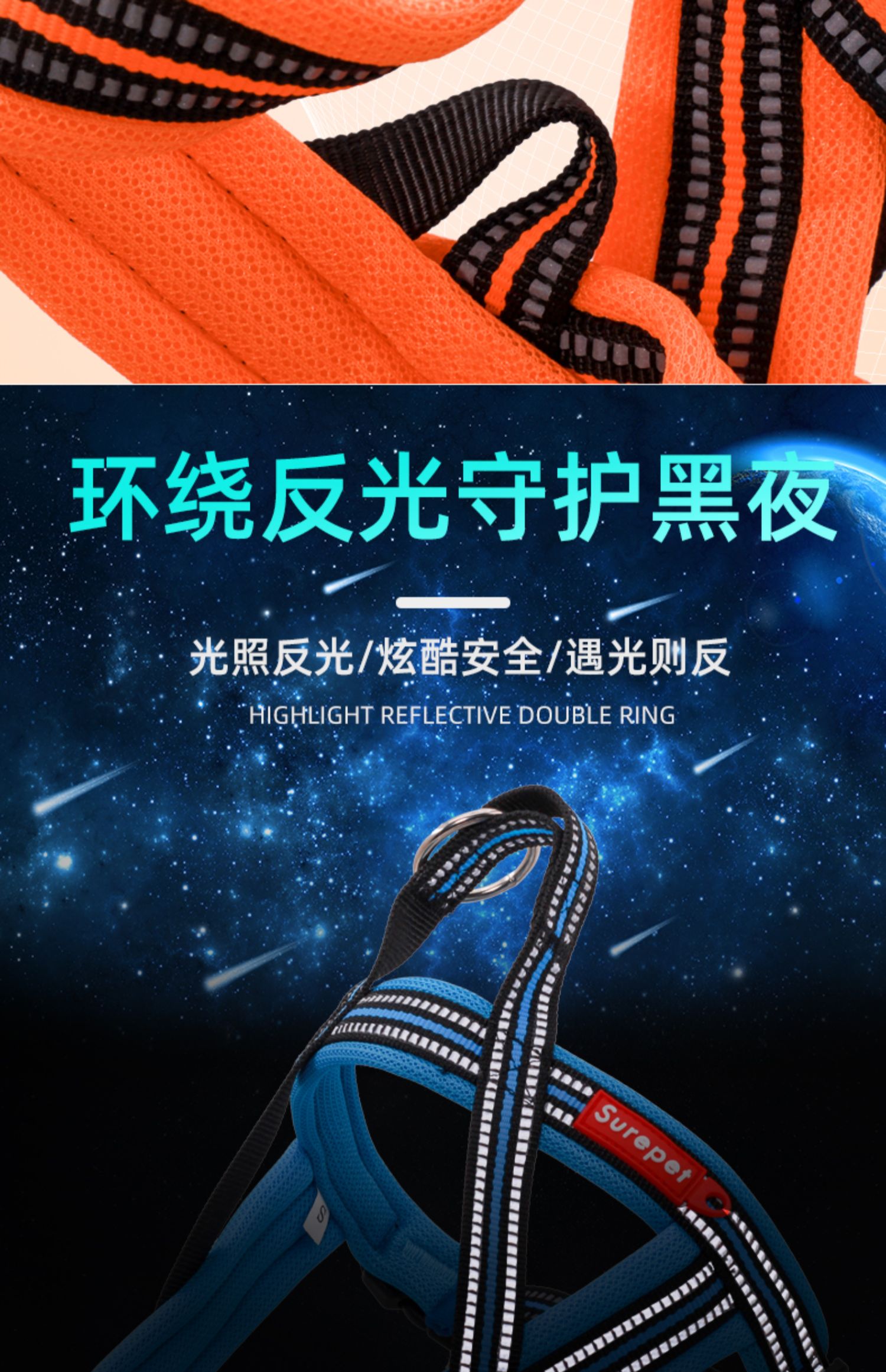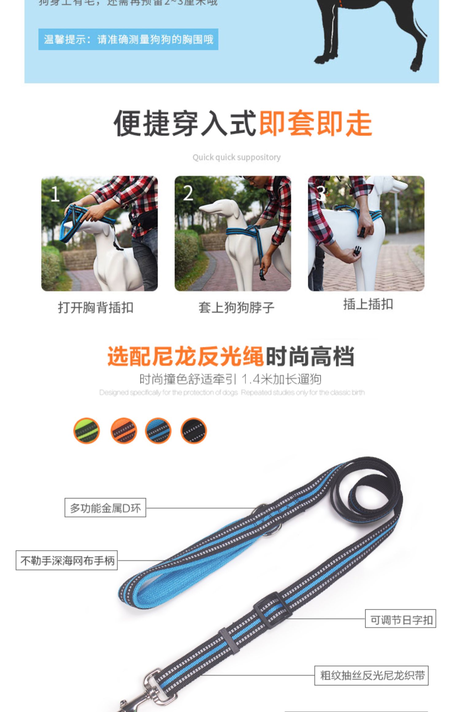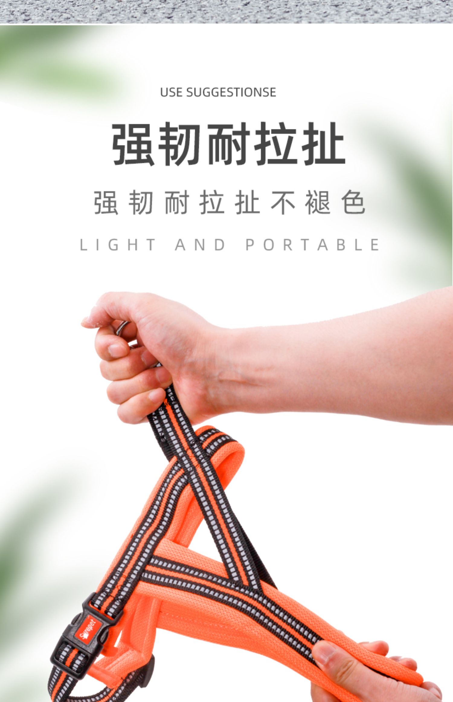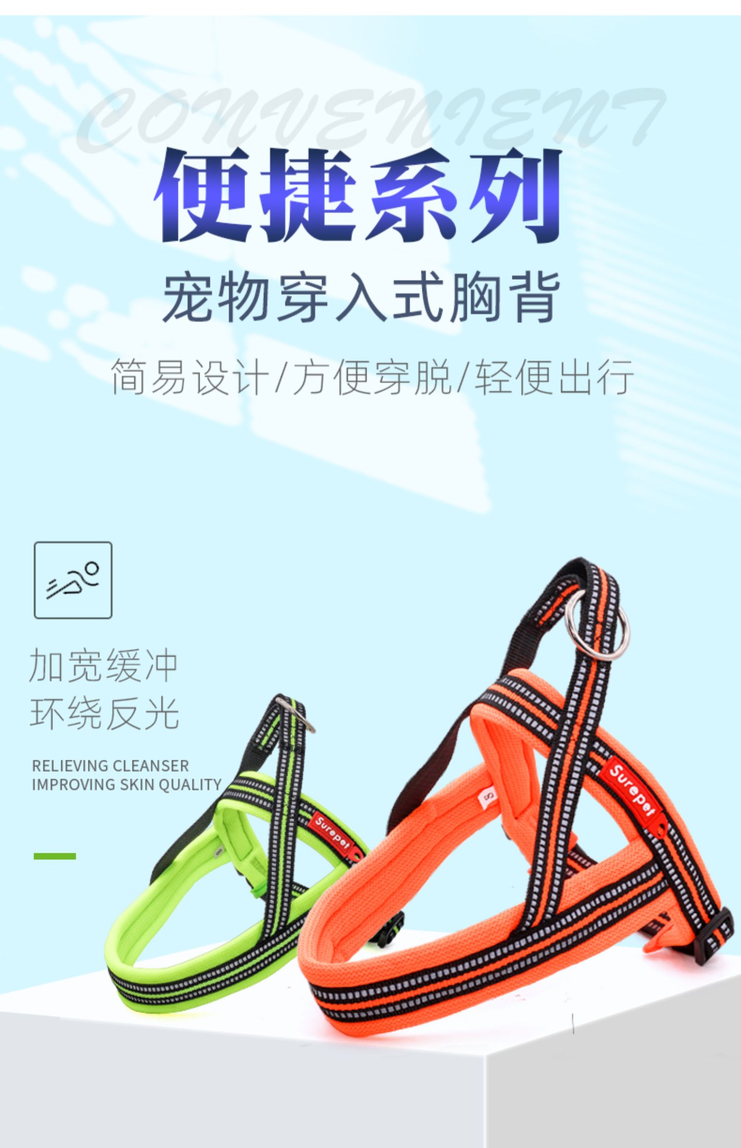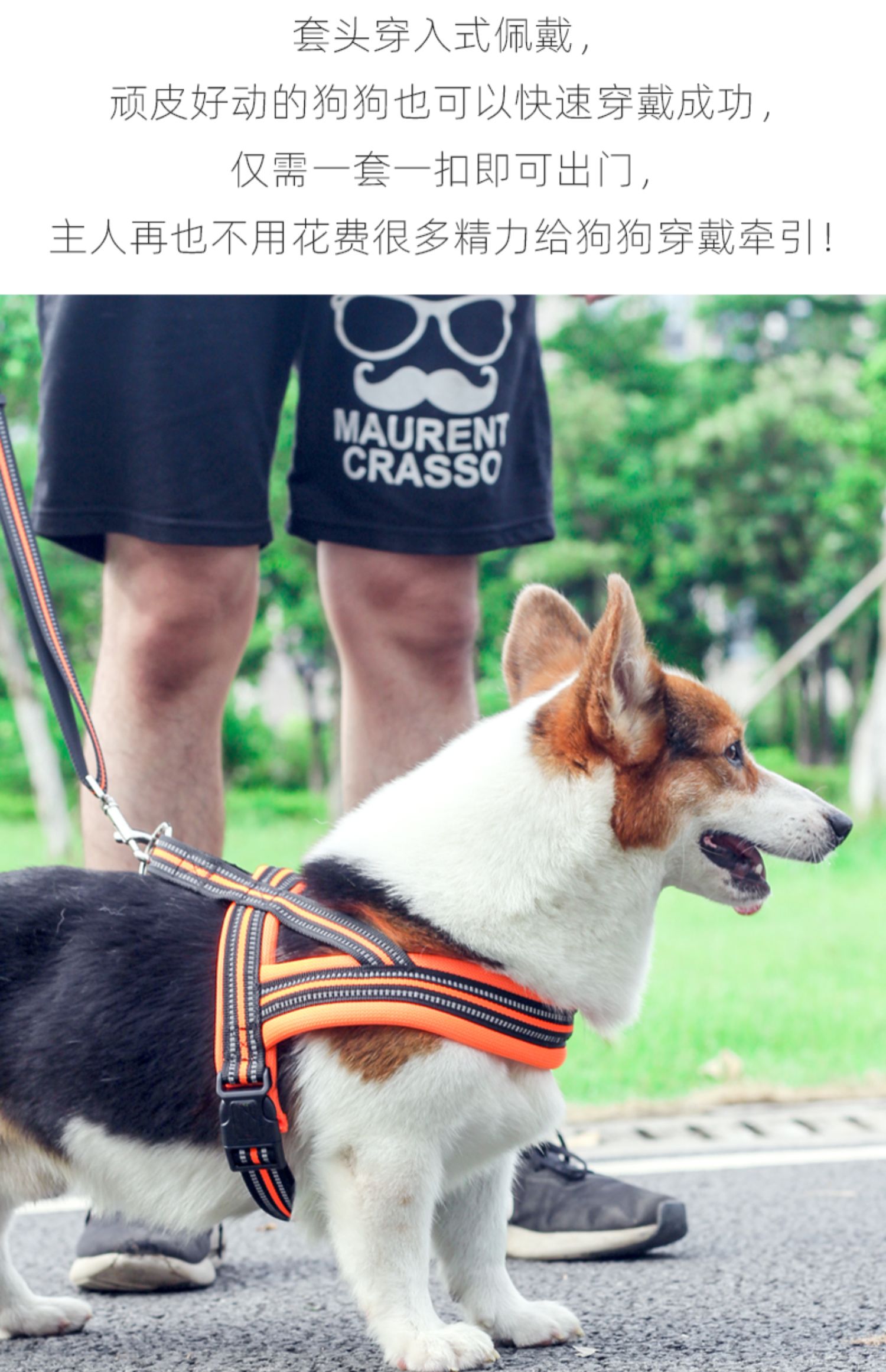 套头入式佩戴,好动的狗狗也能轻松佩戴成功简约舒适防爆冲,不勒脖子,不勒手,不沾毛,易清洗,结实耐用。
