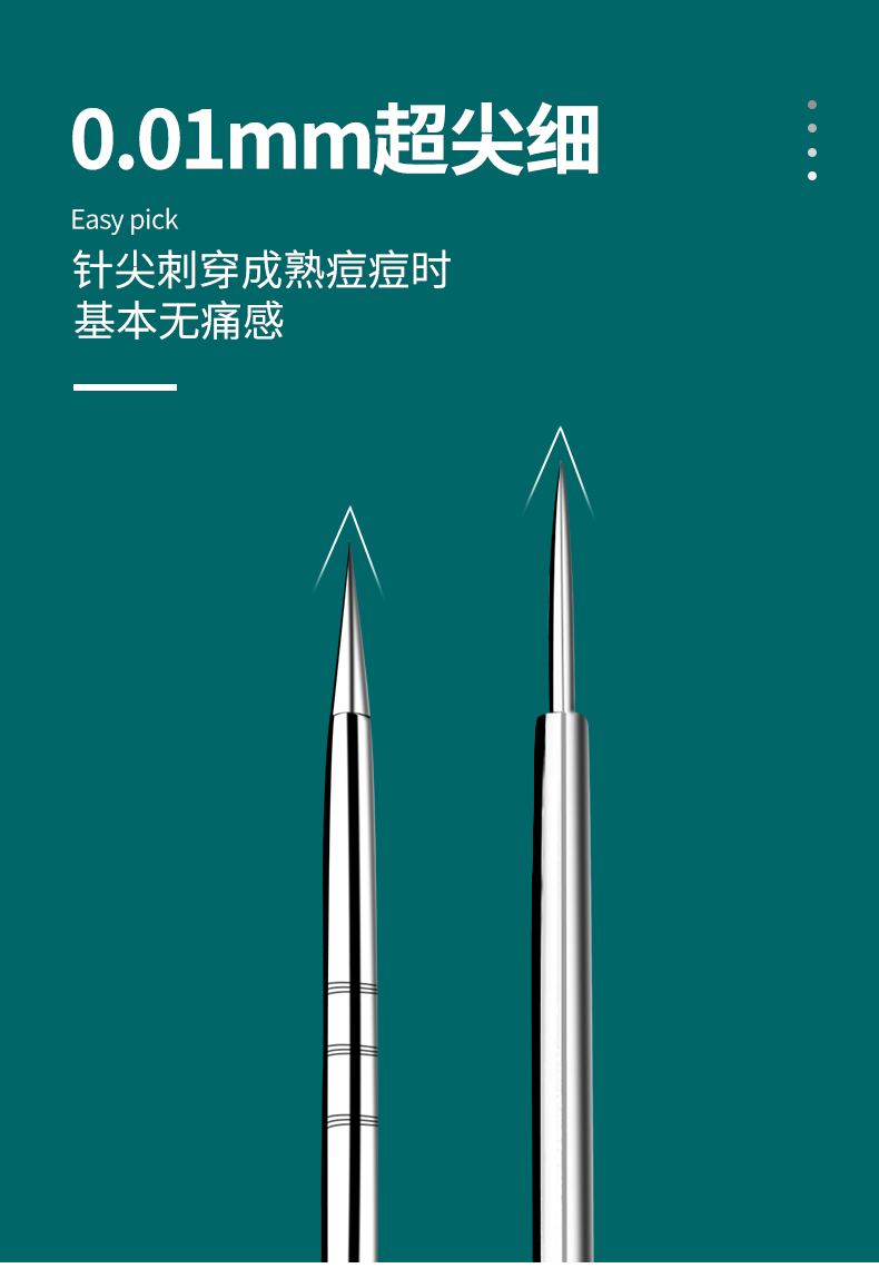 【大小粉刺针组合装,配收纳筒】环形细压圈,针头尖仅0.01mm~全系超尖、全新升级、高吻合度,战”痘“不留痕。操作方便,不易疼痛~贵一点好很多,专为痘痘、粉刺、黑头、脂肪粒研发!