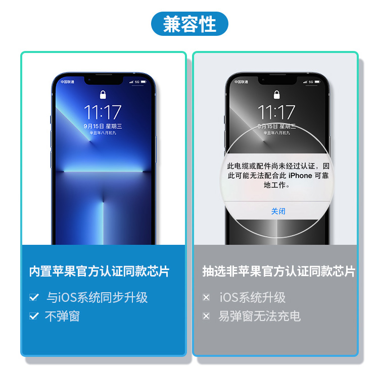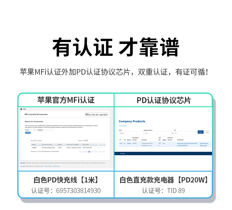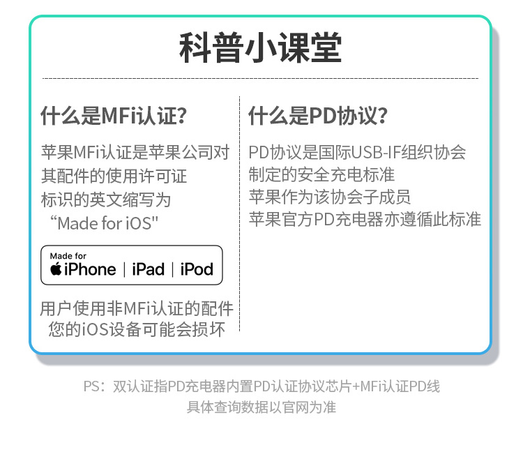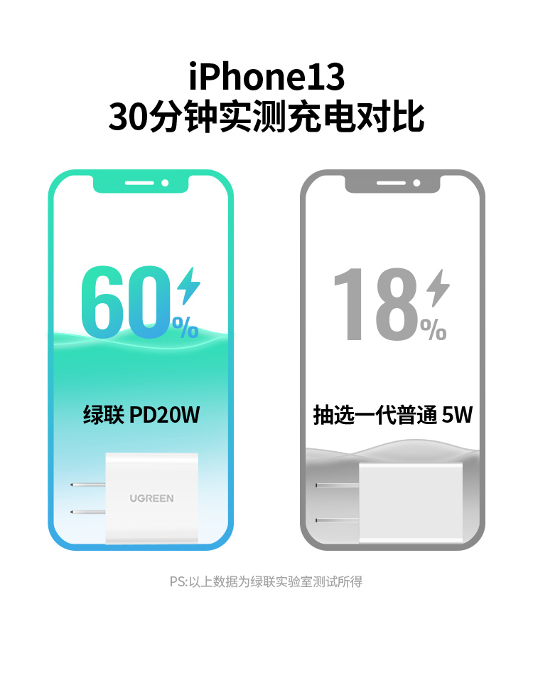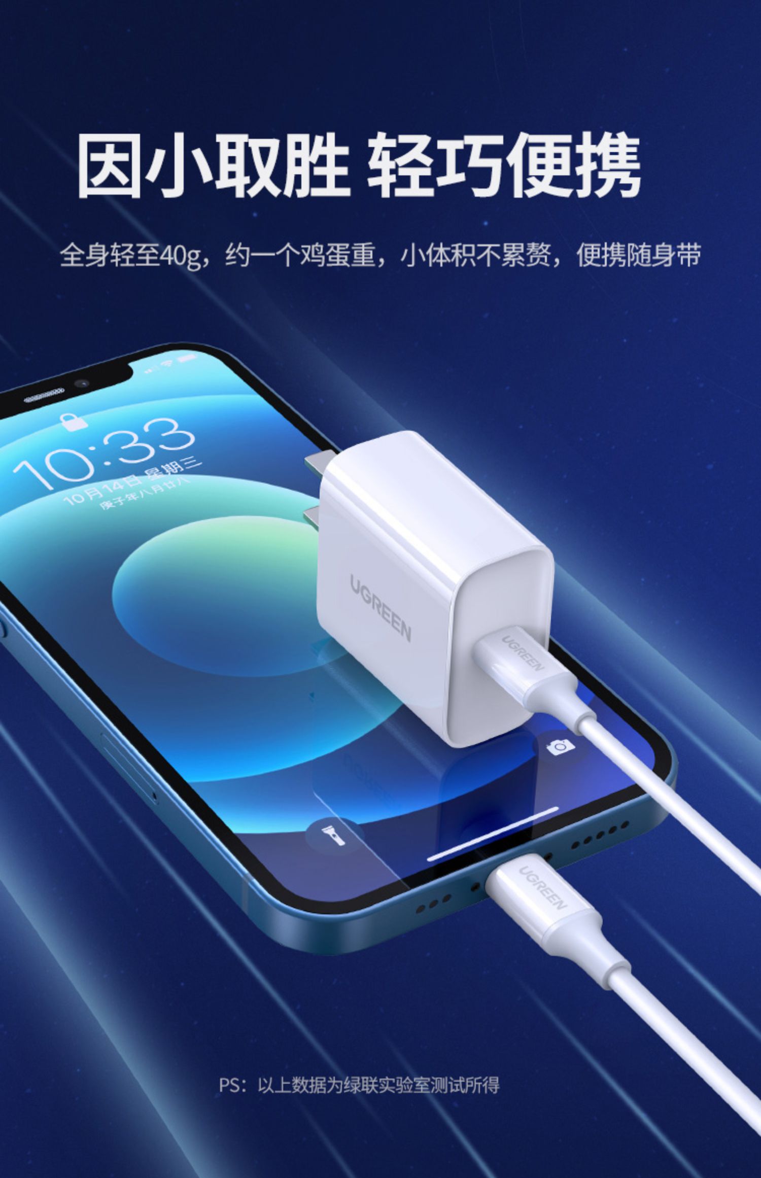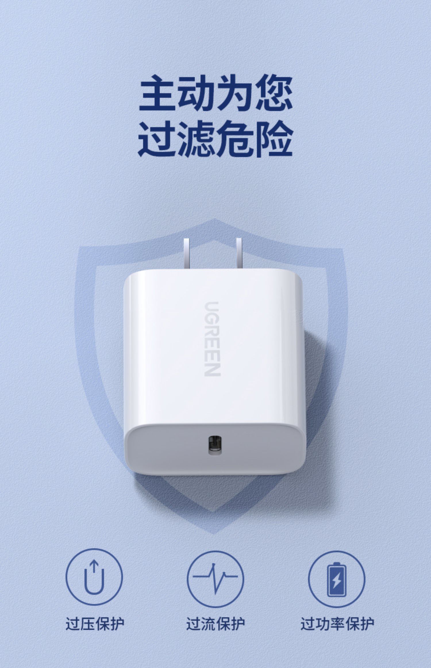 【绿联】值得信赖的大牌,苹果MFI认证外加PD认证双重认证,有证可循,更不伤机,PD真快充,半小时充满60%。PD快充时,当电量充到80%后,智能启动涓流模式降低充电温度,确保电量饱和度,延长电池寿命