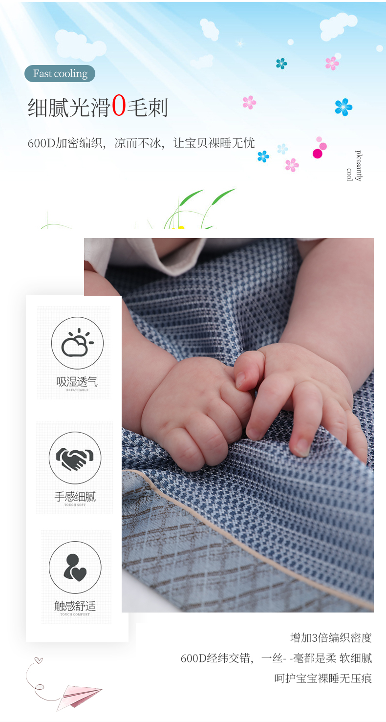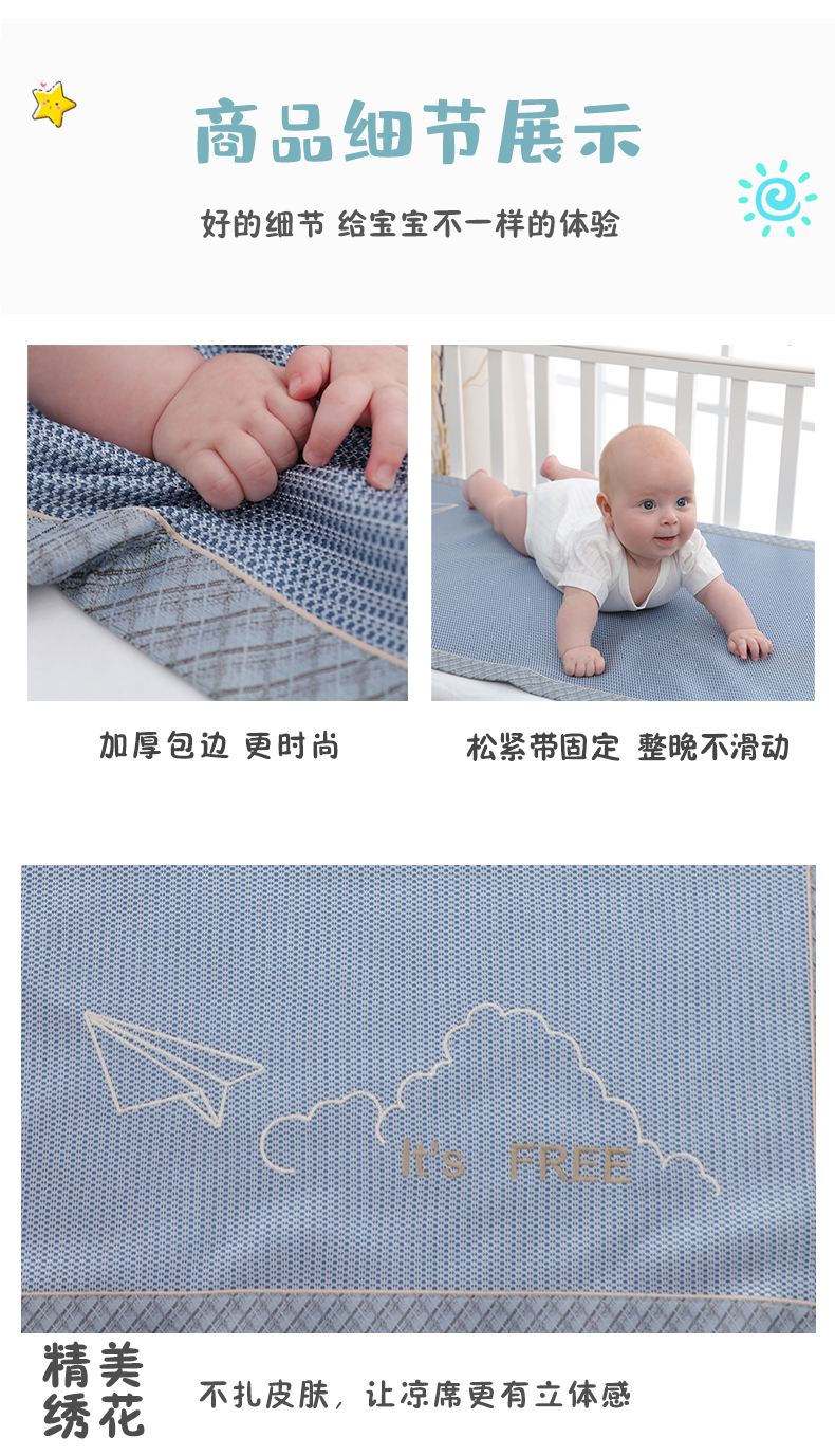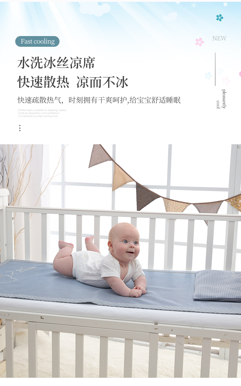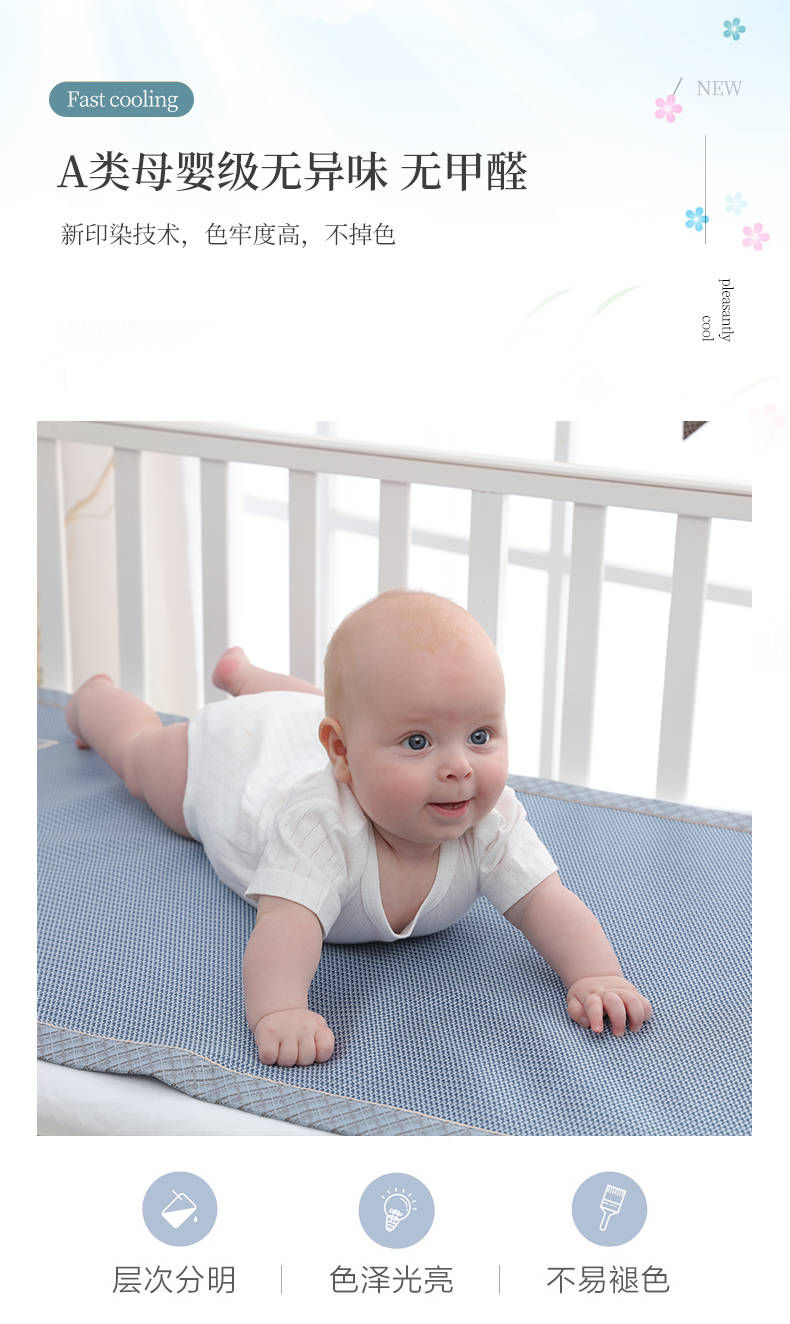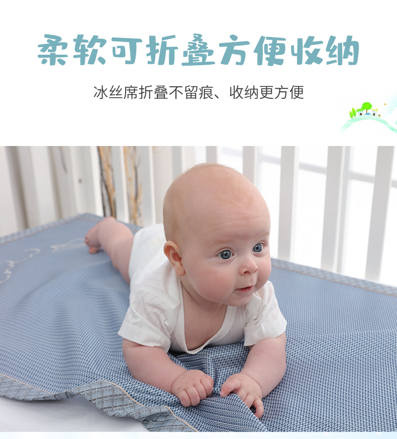 A类夏季婴儿床凉席,无甲醛异味,光滑细腻0毛刺,享受凉而不冰,优质冰丝制作而成,透气散热,久睡无痕,折叠收纳,可水洗持久耐用!