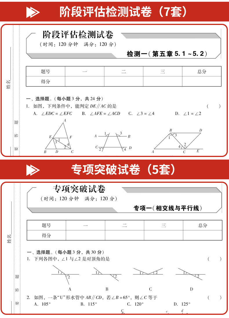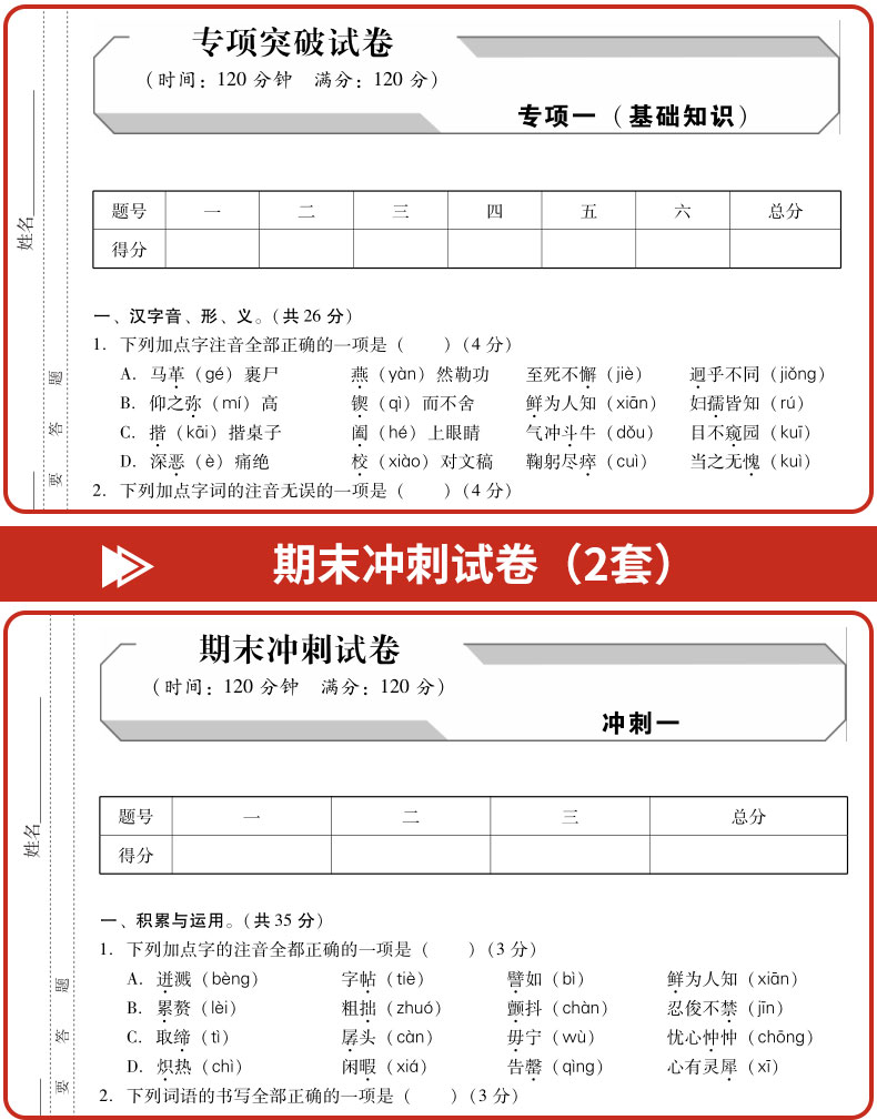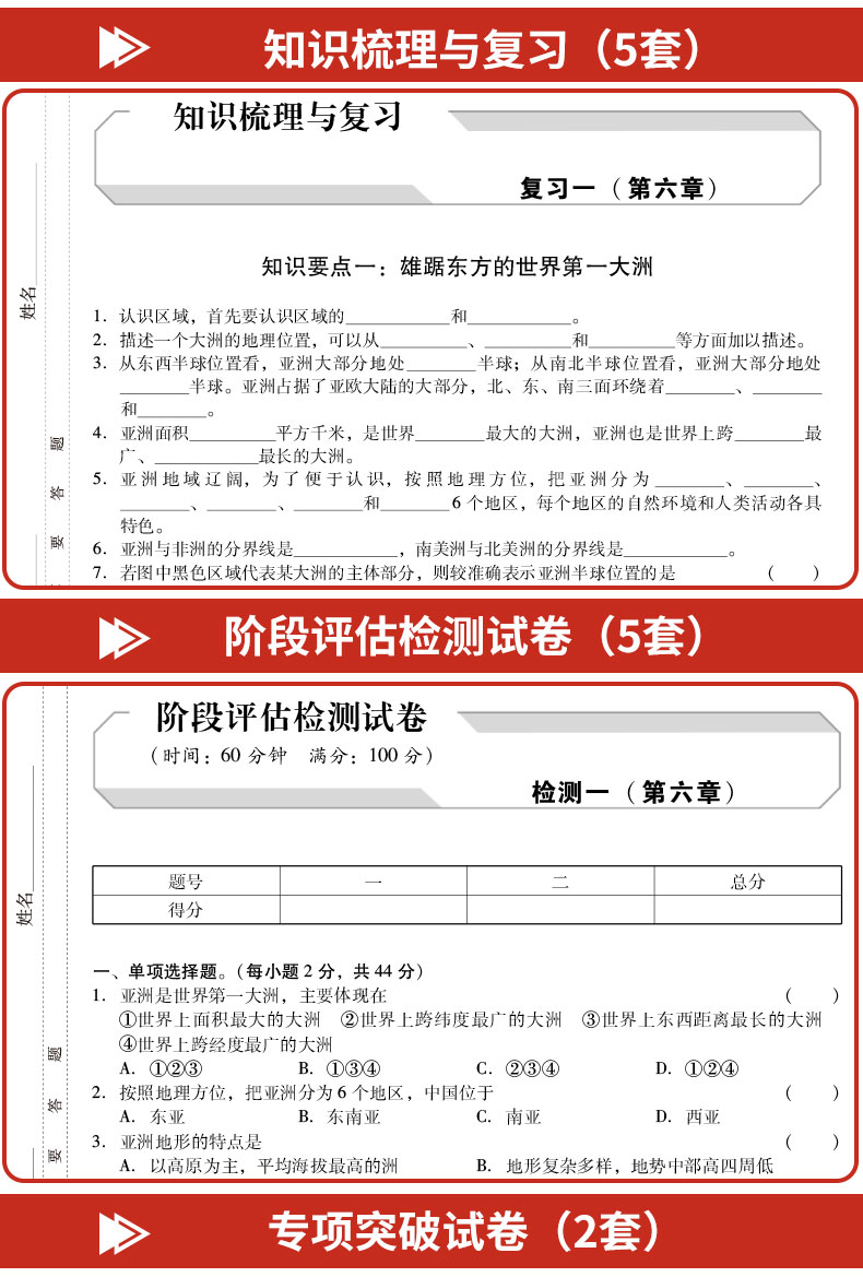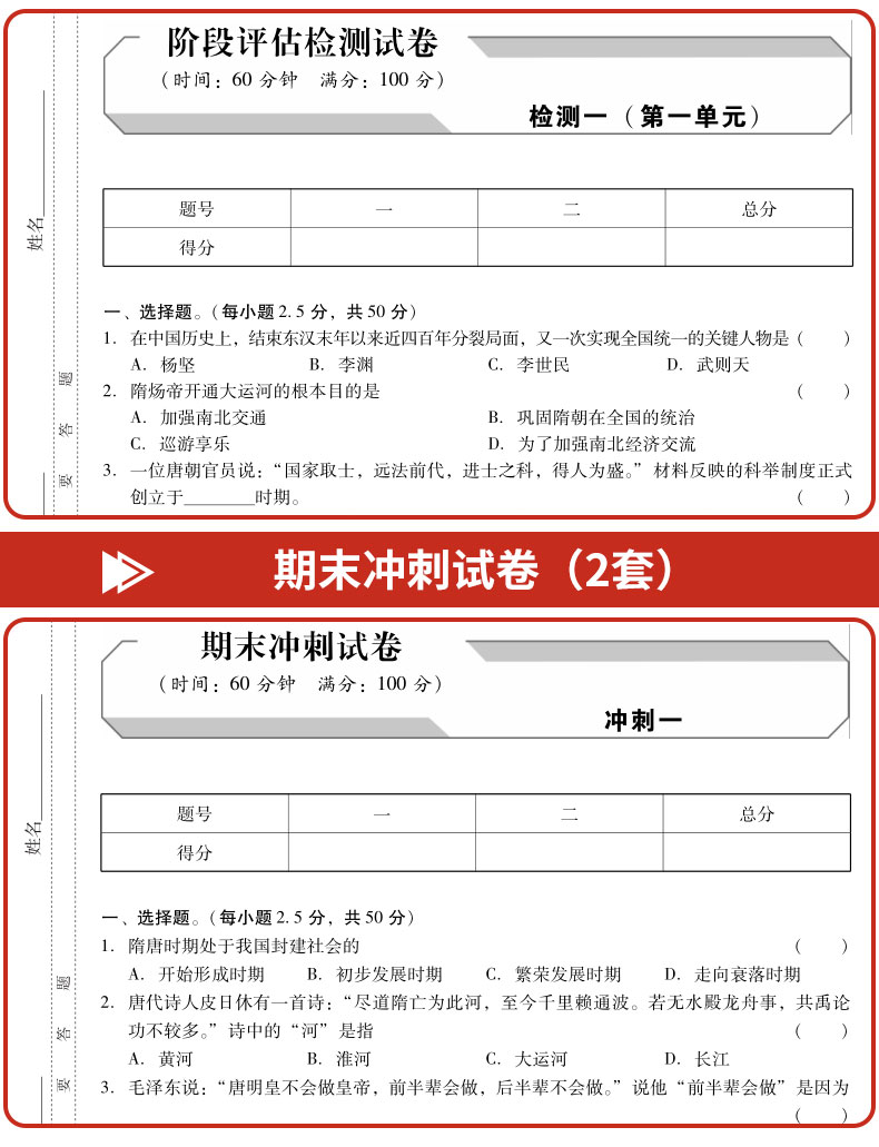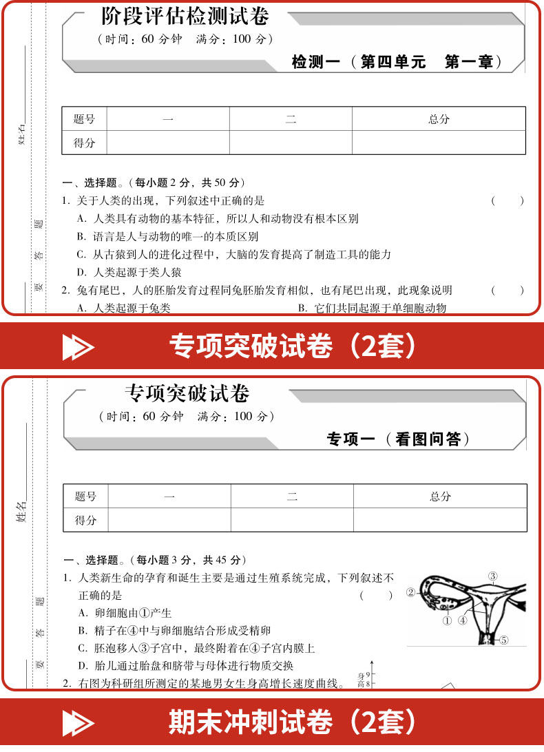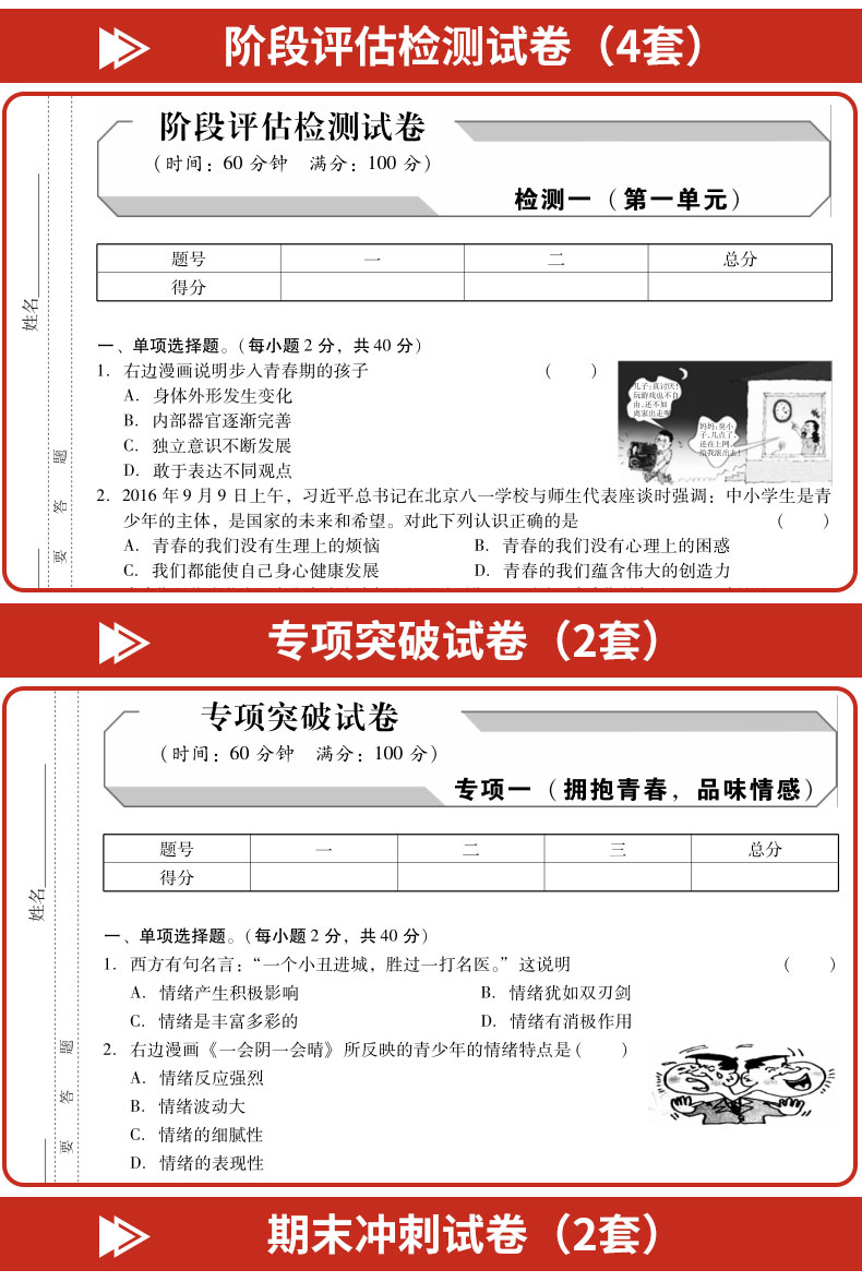 【首单秒杀】初中七八年级下册试卷测试卷期末冲刺100分,语+数+英全套,大字开本,印刷清晰,巩固知识,梳理重点,题型丰富,内容全面,老师推荐,让孩子轻松考个好成绩!