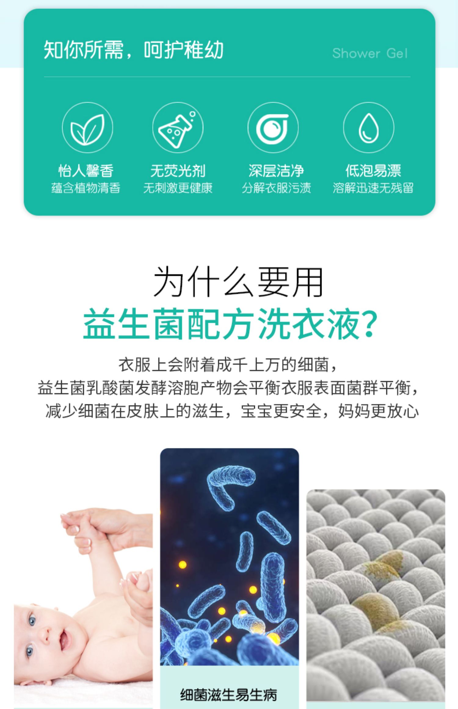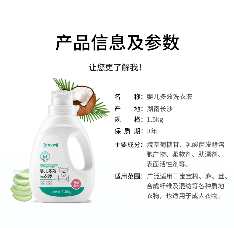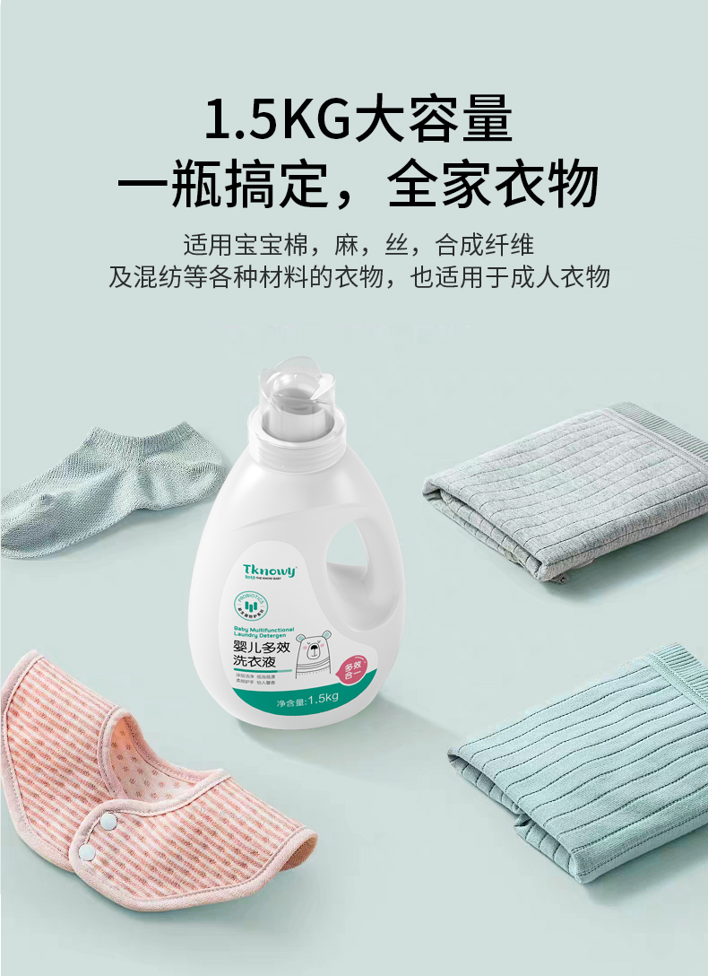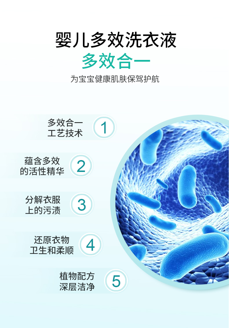 婴儿多效洗衣液,益生菌配方去污强,妈妈更放心,植物清香,无刺激不过敏,轻松去除顽固污渍,为宝宝健康肌肤保驾护航!【赠运费险】