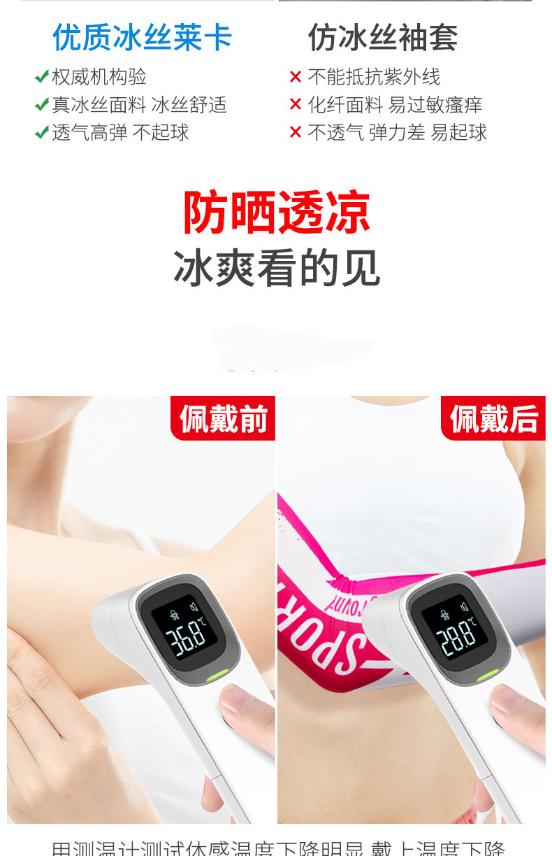 【首单6元】夏季防晒冰丝运动袖套。高端冰丝材质,抗紫外线、吸湿排汗强,穿上这个防晒冰袖,温度可以立减5℃,肌肤上的防晒问题就交给它了!