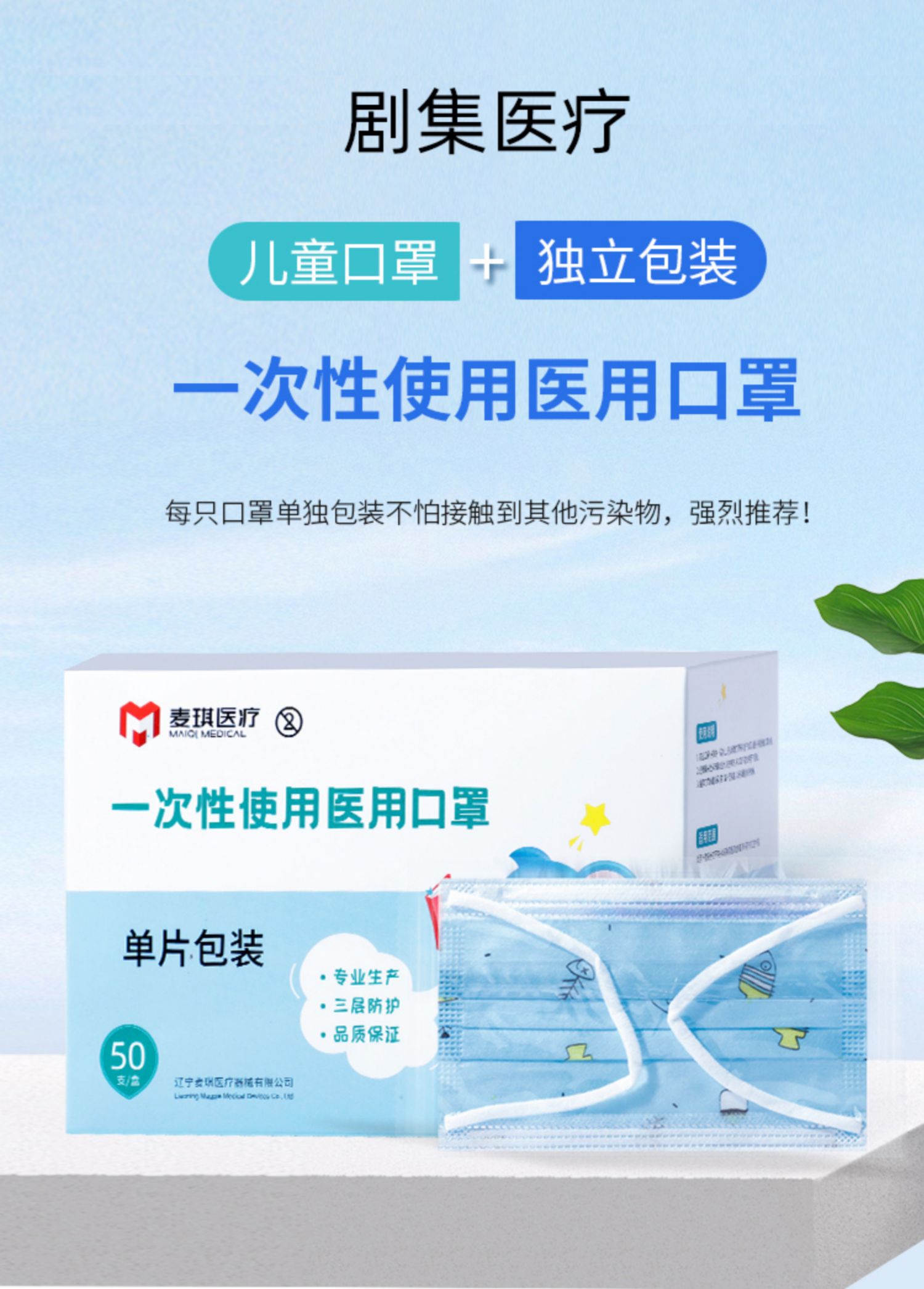 【单只独立包装】儿童灭菌款外科口罩50只!透气不闷鼻,佩戴舒适,可爱印花,针对儿童脸型打造!预防流感交叉感染,疫情反复,给孩子用点好的很有必要!【赠运费险】