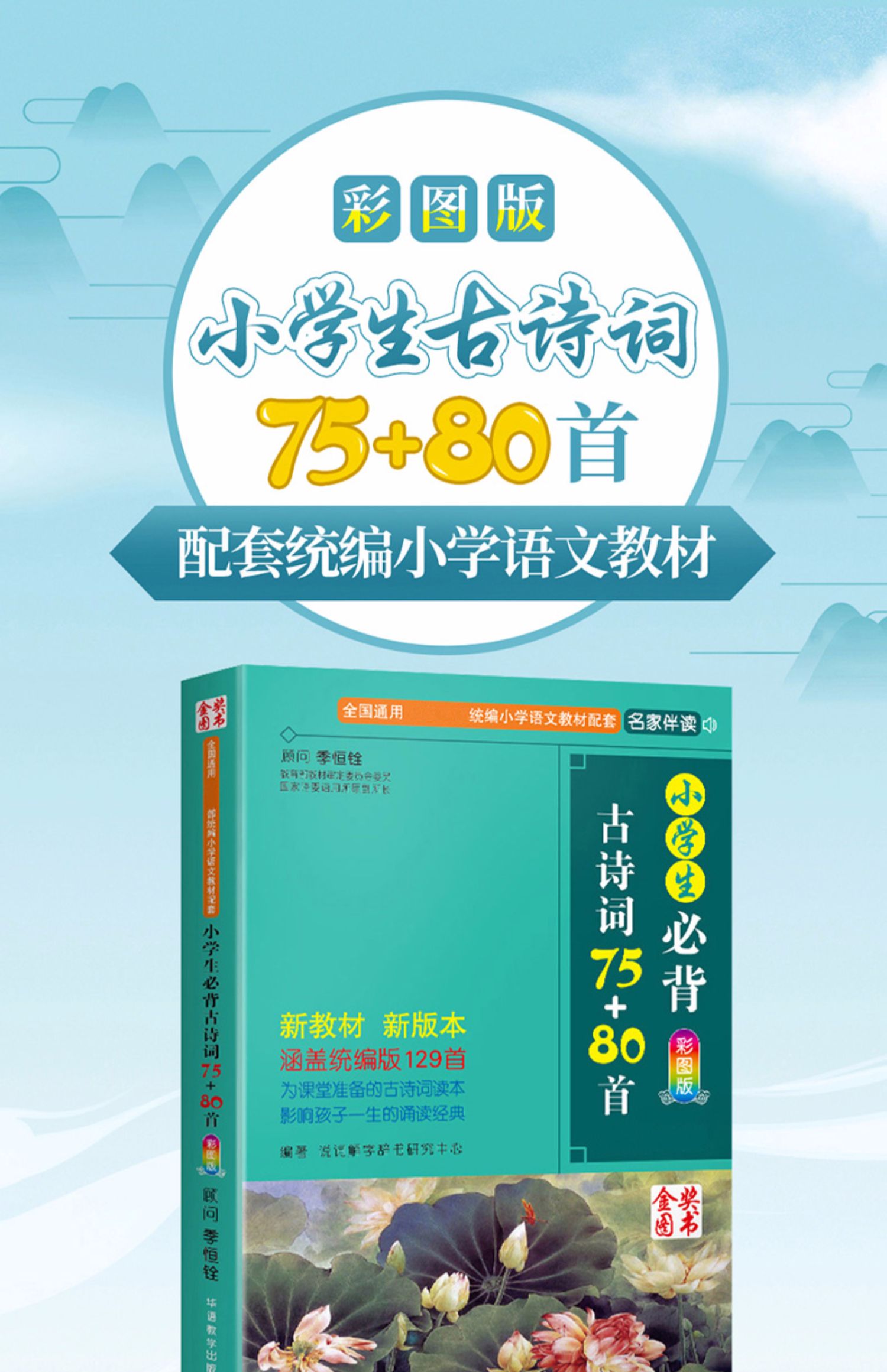 【带音频】小学生古诗词75+80首,新教材,新版本,金奖书籍,全国通用,名家伴读,提升记忆力,培养认知能力,提高社会交往能力。