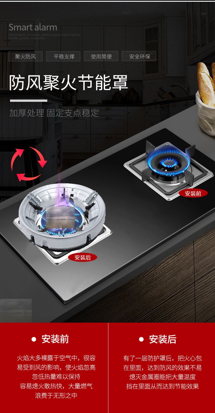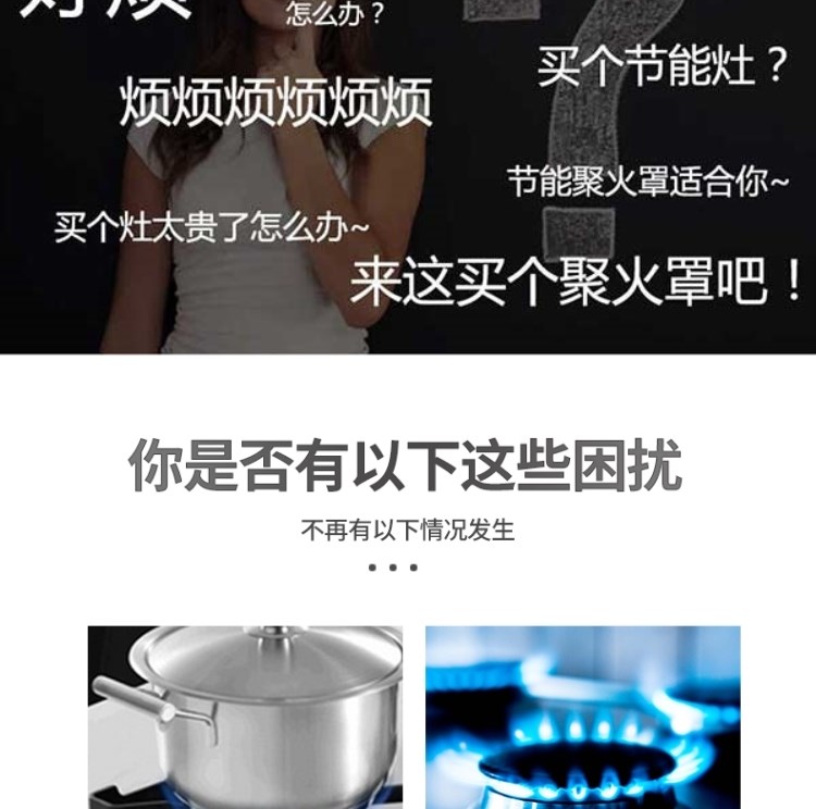 立体防风,聚火节能,隔热防滑,集火导热,镀锌材质,火焰集中受热均匀,适配95%燃气灶/