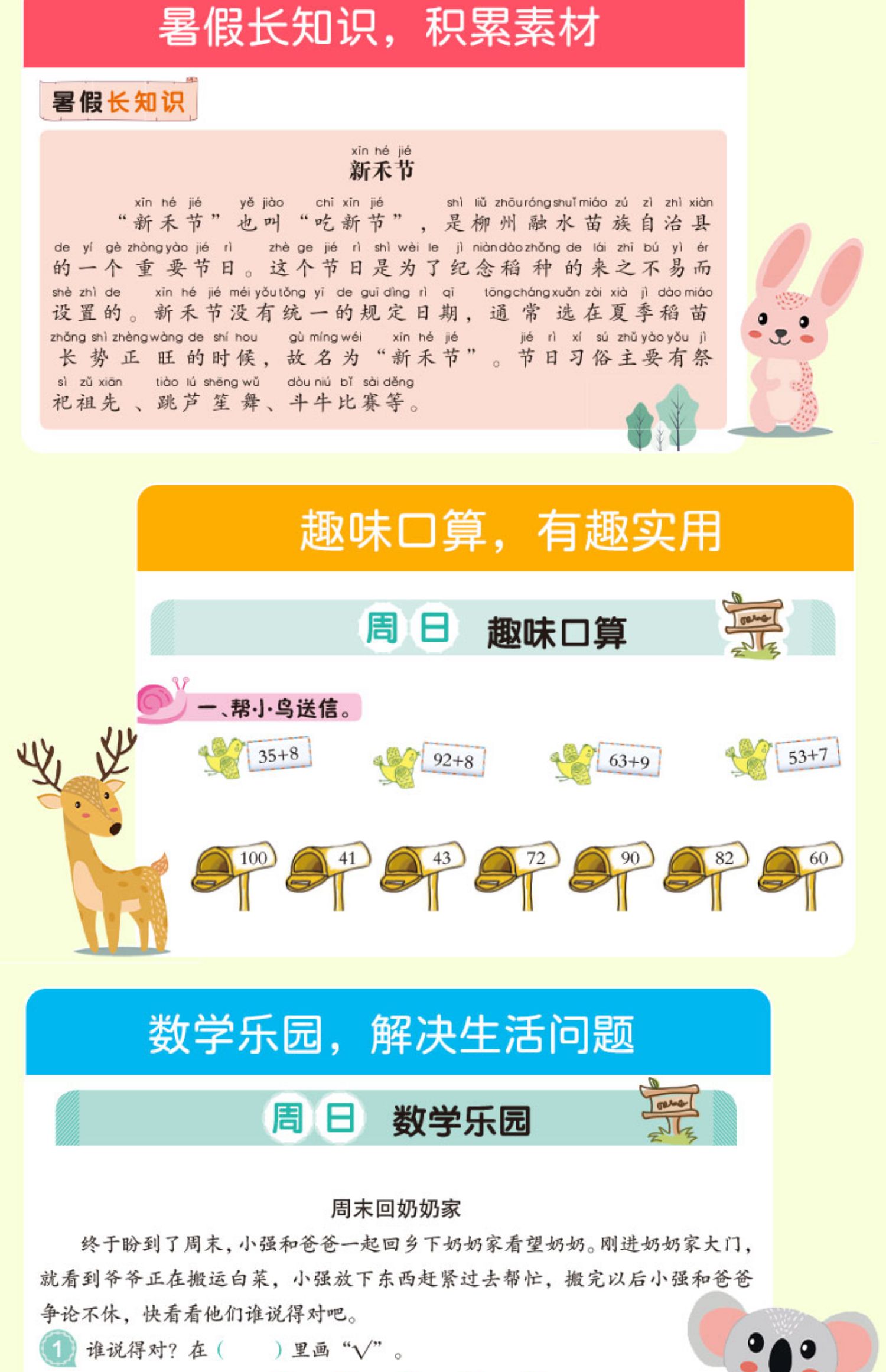 赠作文书!全套3册!2022暑假衔接练习册【暑假阅读+暑假应用题+暑假口算题】正版练习册提前复习,每日练,抓习惯,顾基础,复习与预习,双向提升!给孩子准备一个完整的暑假提升计划!【7天无理由退换】