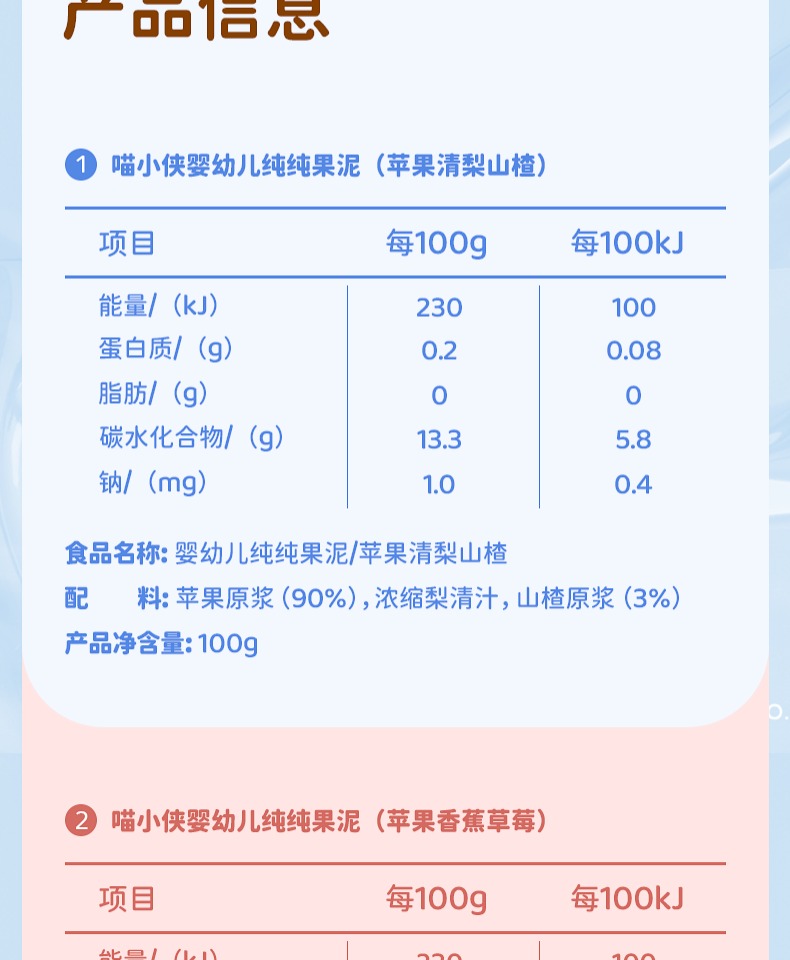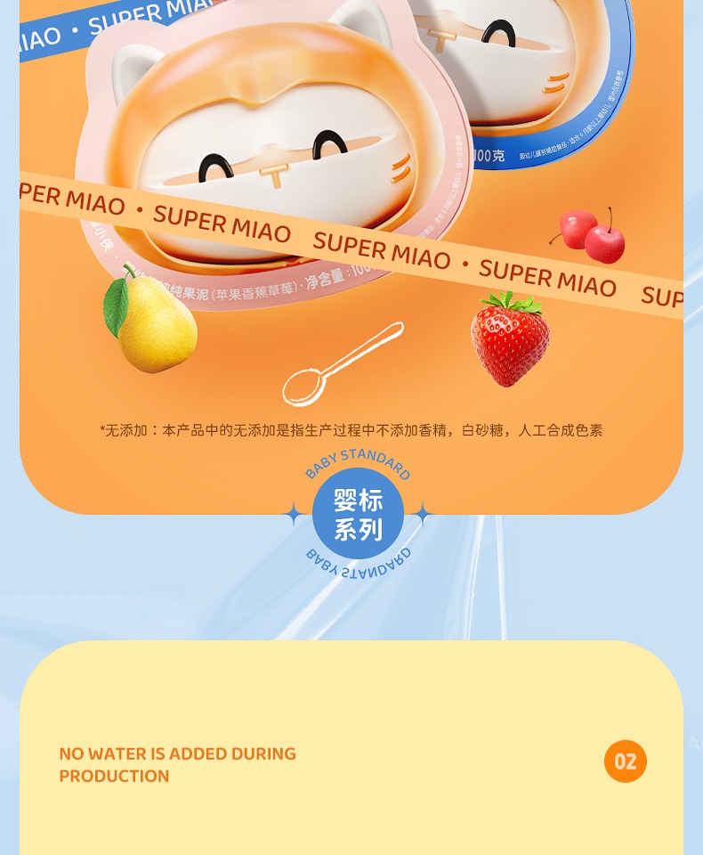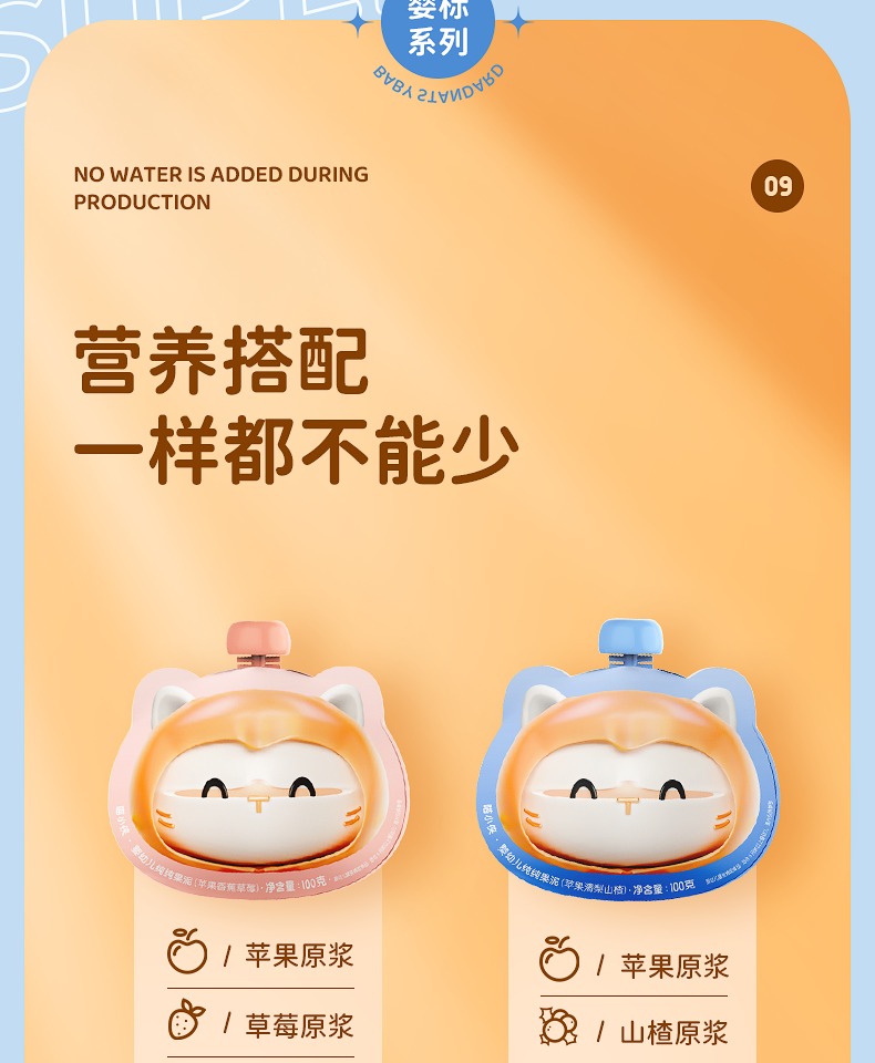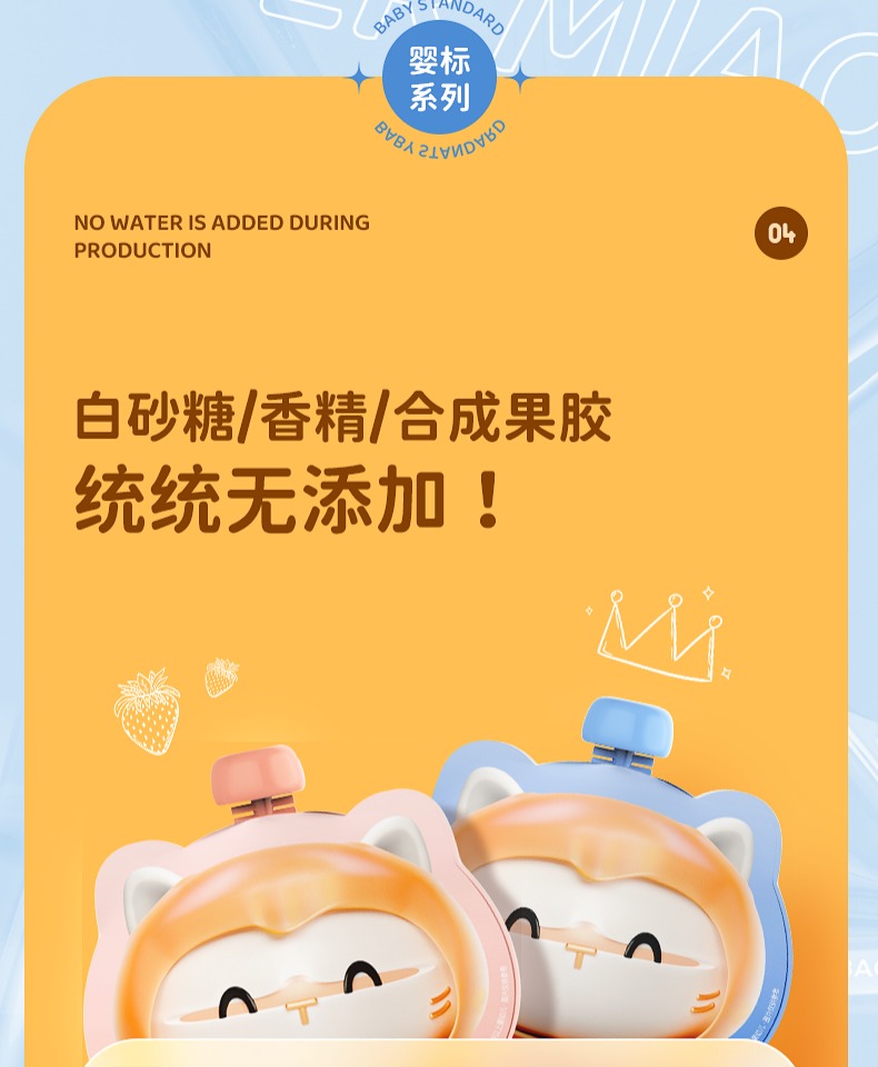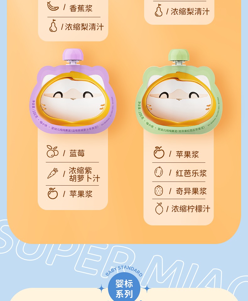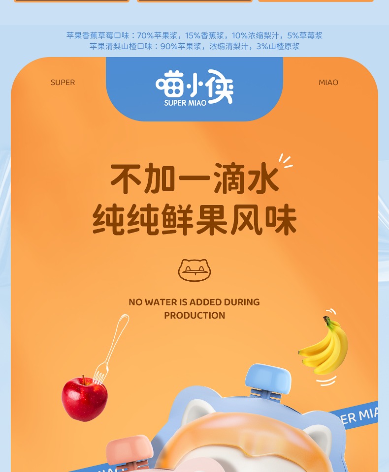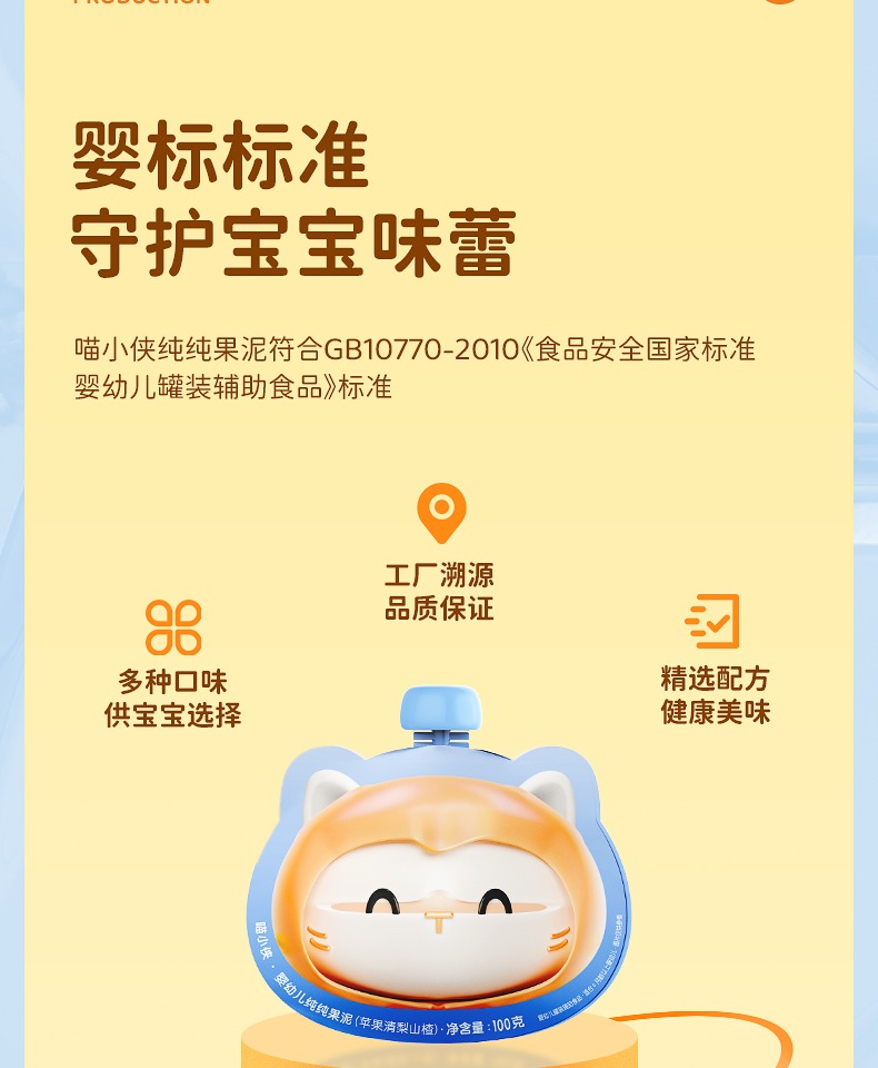婴幼儿果泥,多种口味可选,不添加一滴水,纯纯鲜果风味,每一口都是天然滋味,营养丰富,合理配比,可爱猫造型,尽情吸猫猫!!