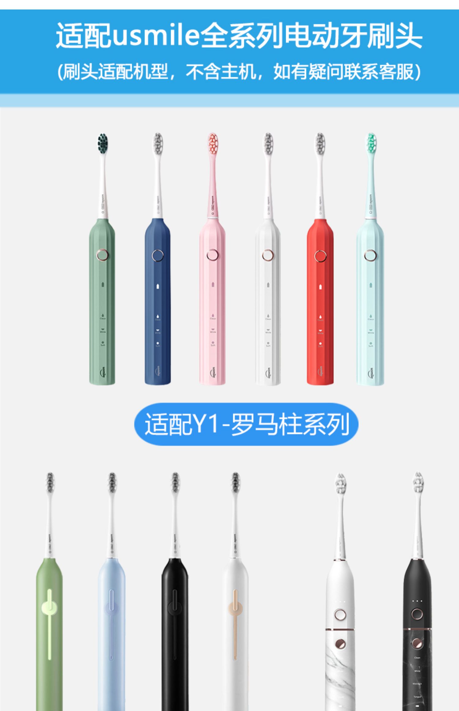 【送独立防尘盖】适配usmile电动牙刷头Y1/Y4/P3/U2/U3大理石45度P1一号刷激泡Pro,顶部磨圆,高密度植毛,抽真空独立装~