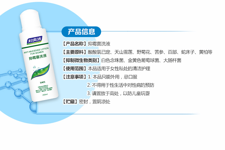 配冲洗器!妇炎洁抑霉菌洗液200ml,植物抑菌,温和不刺激,女冲洗阴道,去异味,洁阴止痒,杀菌,隐私发货!