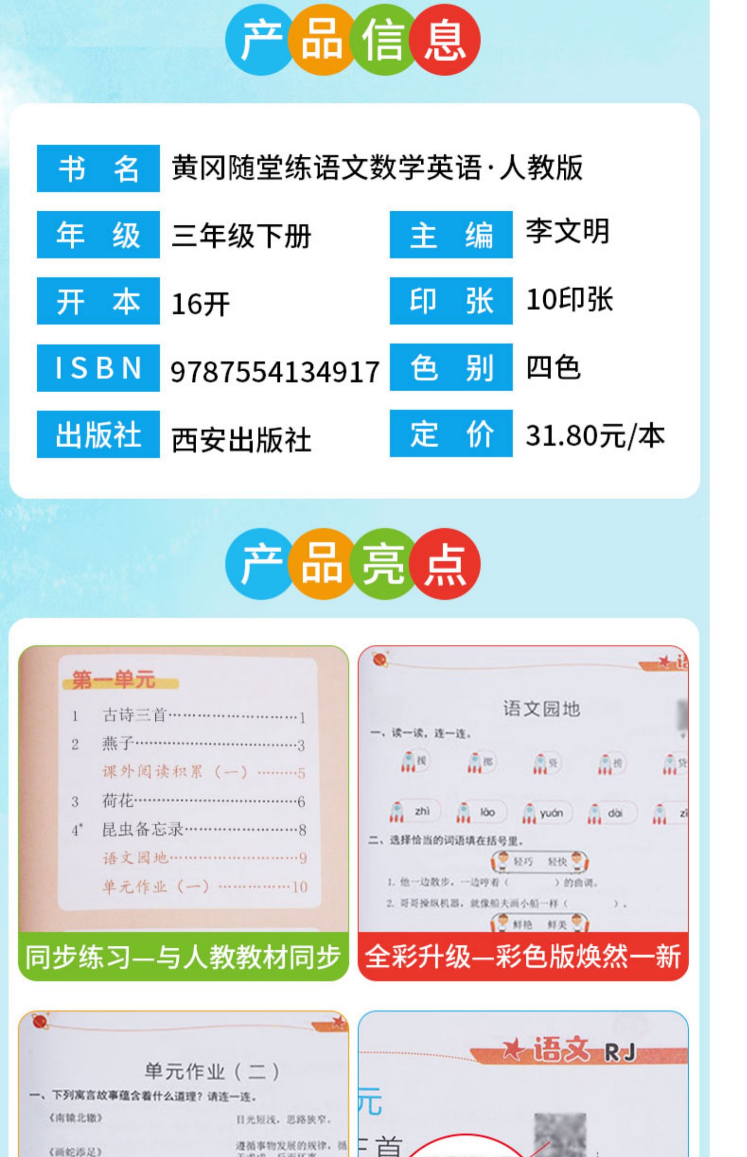 一课一练同步测试卷参考答案,彩色印刷,与课本同步,环保纸张,字迹清晰,名师出题,紧扣重点,赢在起跑线上!