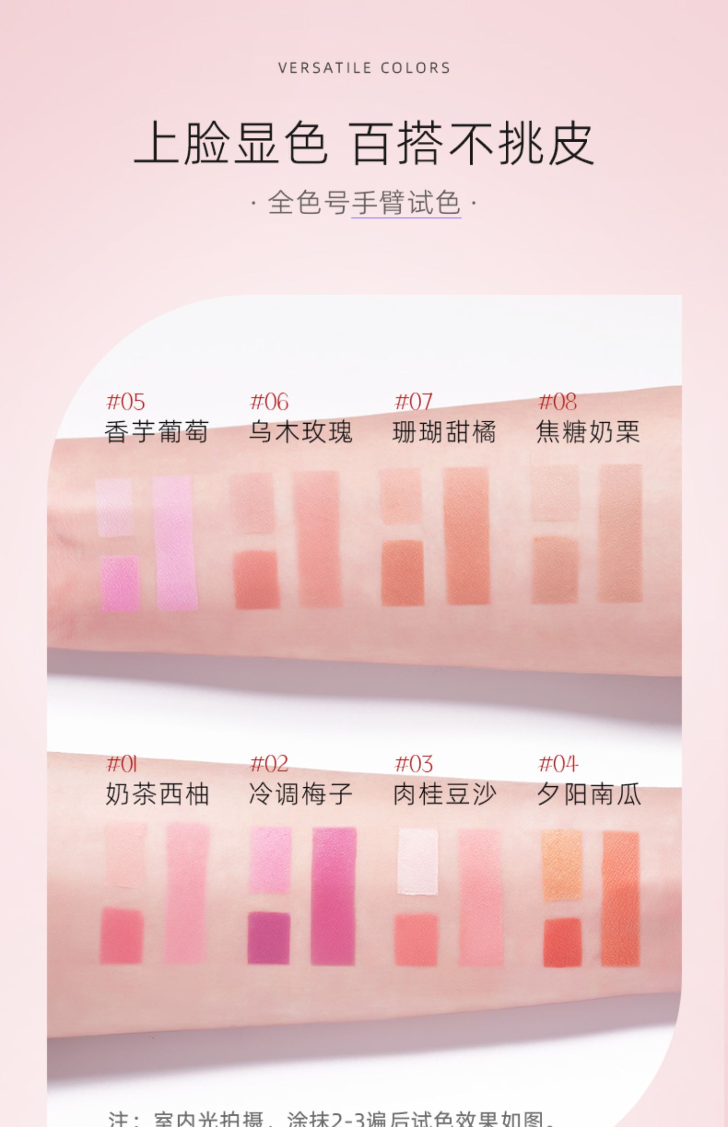 一抹好气色,犹如肌肤自带红晕,色彩百搭,不挑皮,轻松驾驭任何场合,柔滑贴肤,长久保持精致妆容