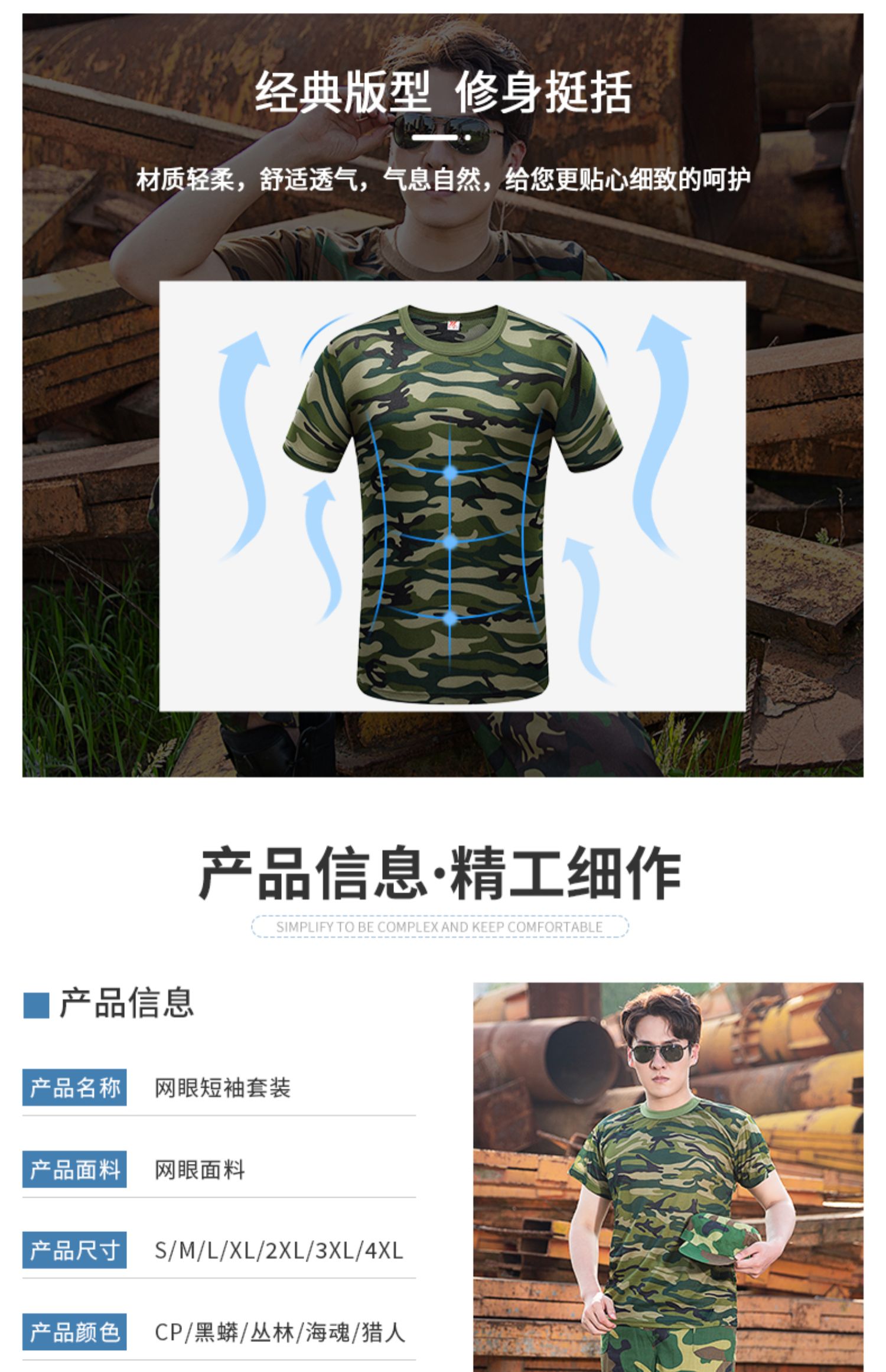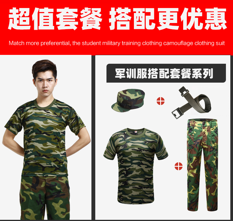 【仅需5.8元】新式迷彩服短袖套装男女大学生迷彩军训服夏装T恤夏季薄款工作服,速干透气,舒适亲肤,不起球,不缩水.。