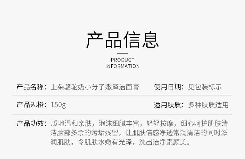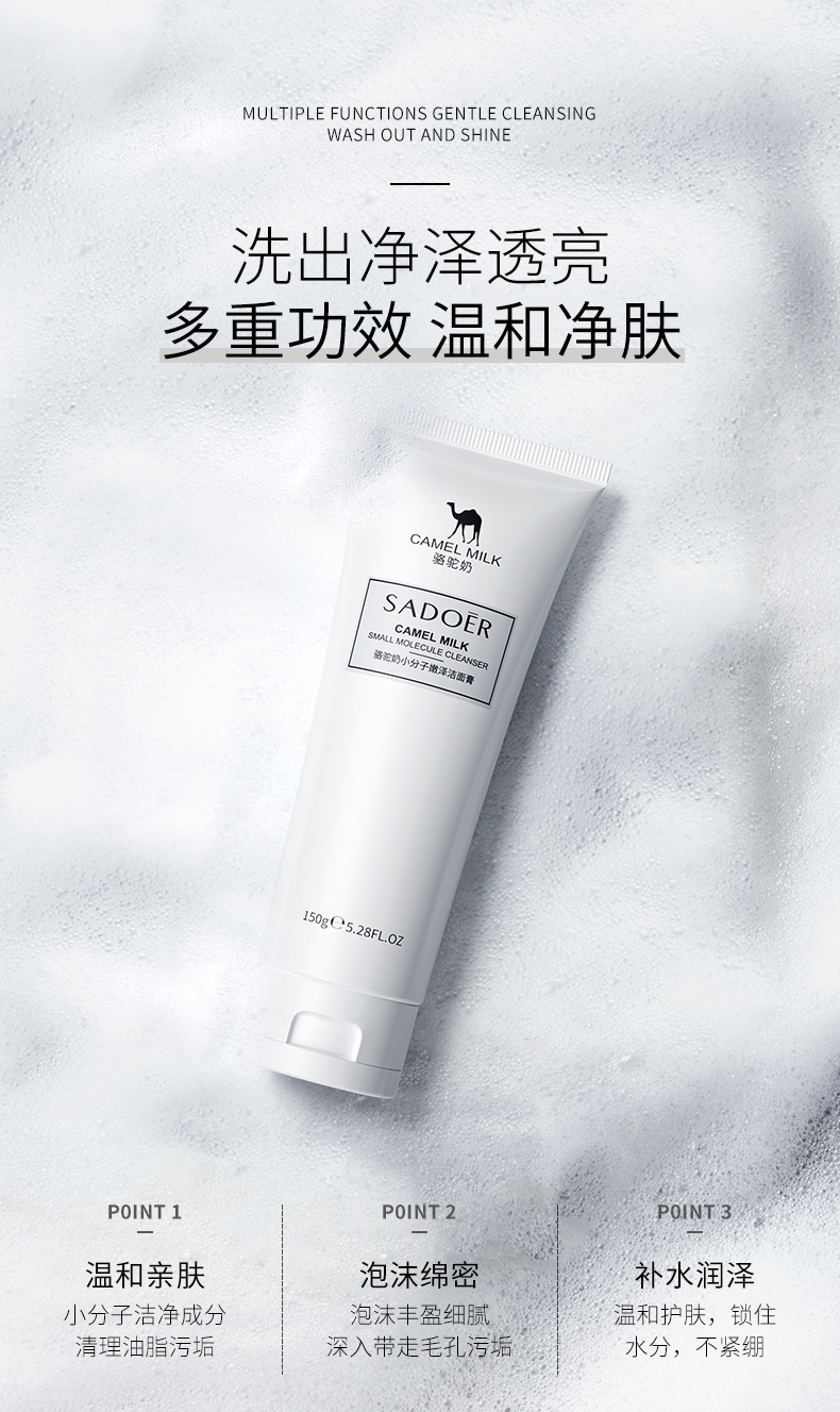 【拍1发2】上朵骆驼奶小分子洁面乳150ml*2,氨基酸温和配方,洁净时不易刺激肌肤,搭配起泡网,能打出奶油般细腻绵密的泡沫,清除污垢的同时也能使肌肤变得柔软!