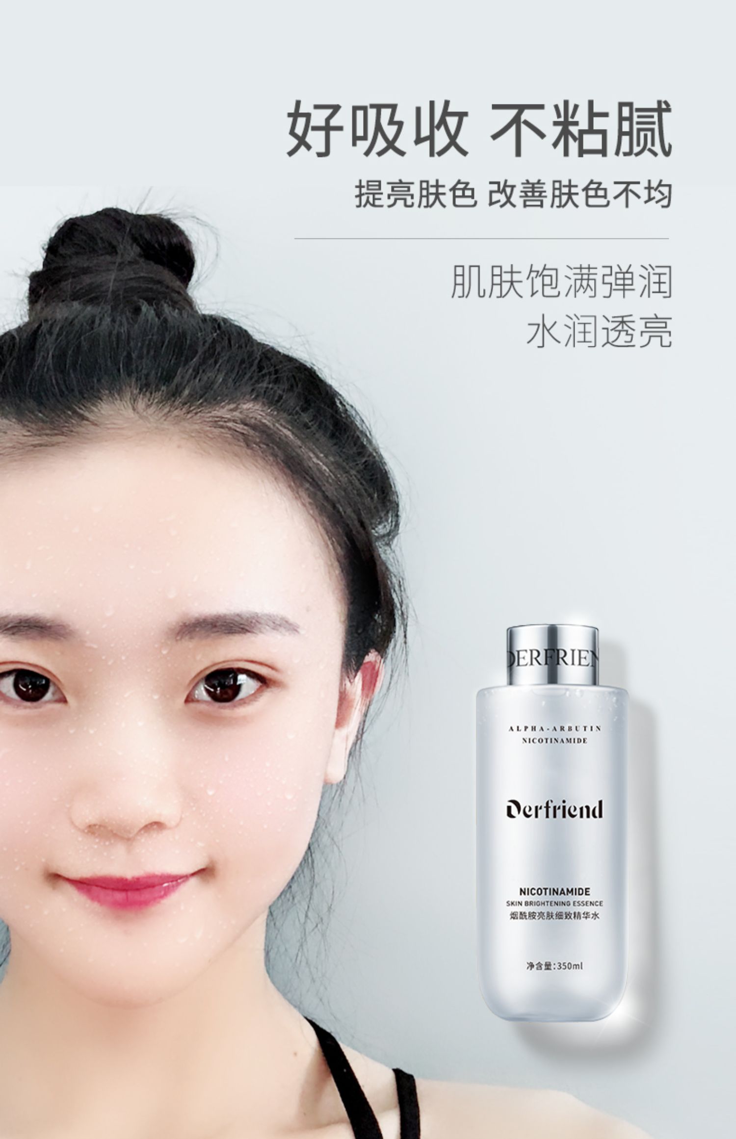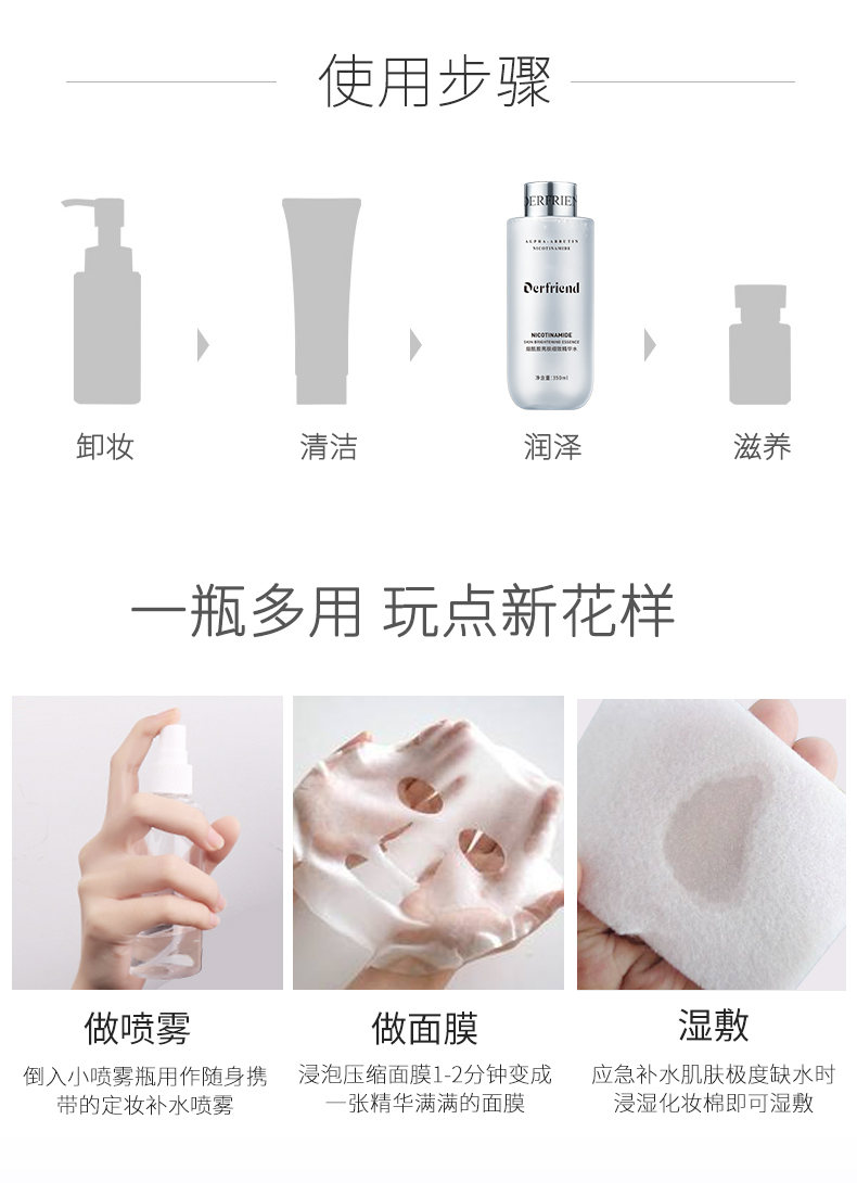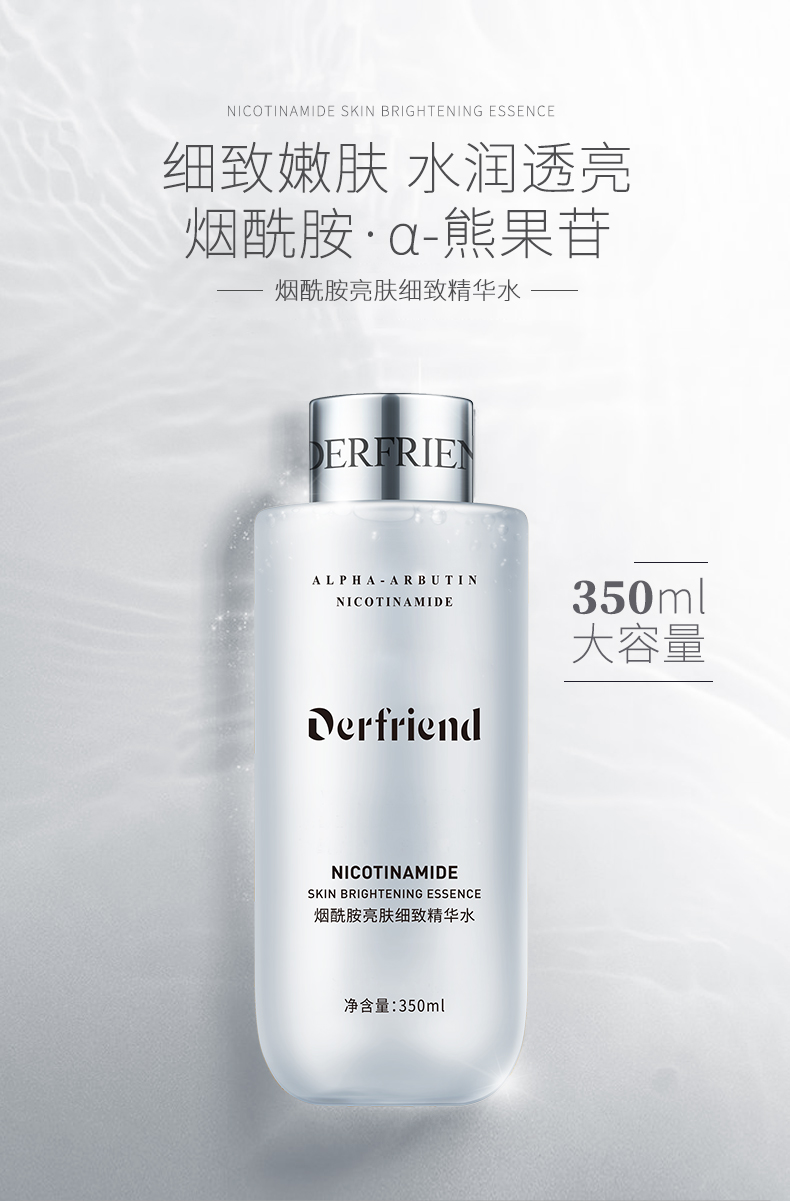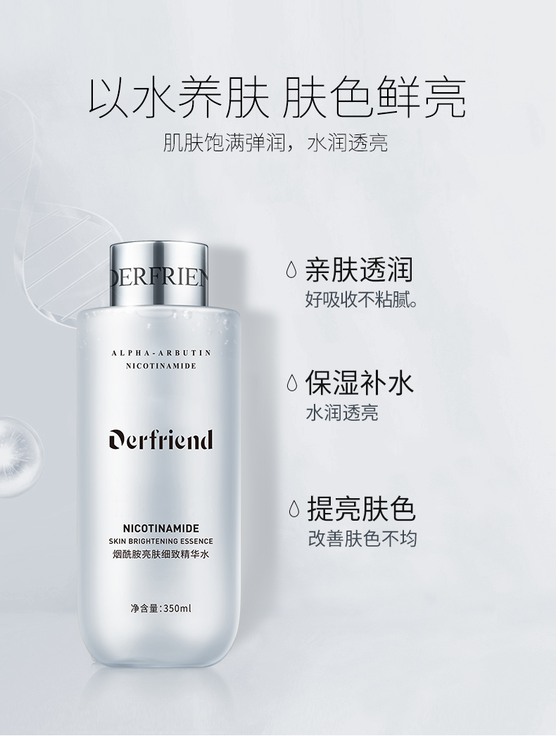 烟酰胺亮肤细致精华水,350ml大容量,保湿水润,提亮肤色,改善肤色不均匀,细致嫩肤,好吸收不油腻,以水养肤,肤色鲜亮,肌肤饱满弹亮!!