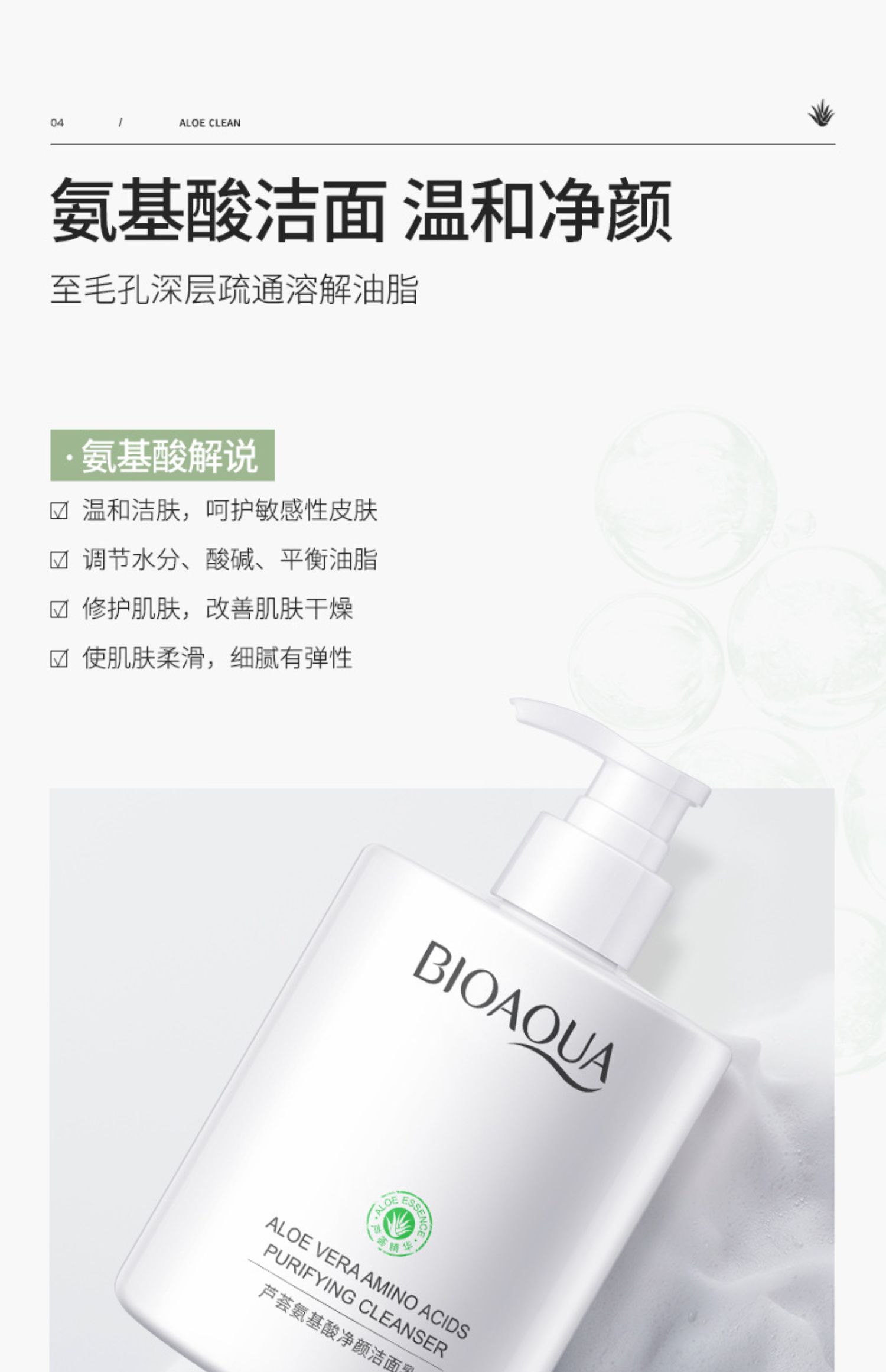 屈臣氏李佳琦直播间推荐芦荟胶氨基酸洗面奶补水保湿控油祛痘淡化痘印深层清洁收缩毛孔去黑头洁面乳学生男女士专用!可搭面膜、洗面奶、水乳、身体乳等化妆品全套护肤品套装使用,效果更好!