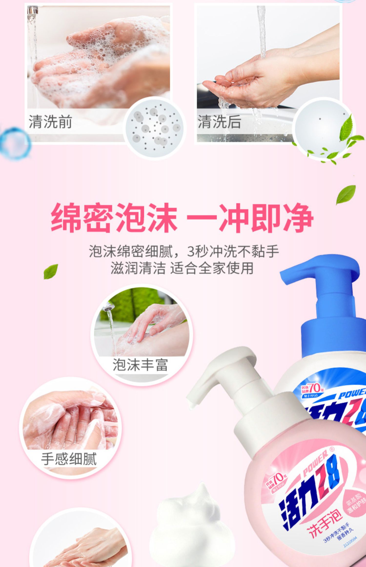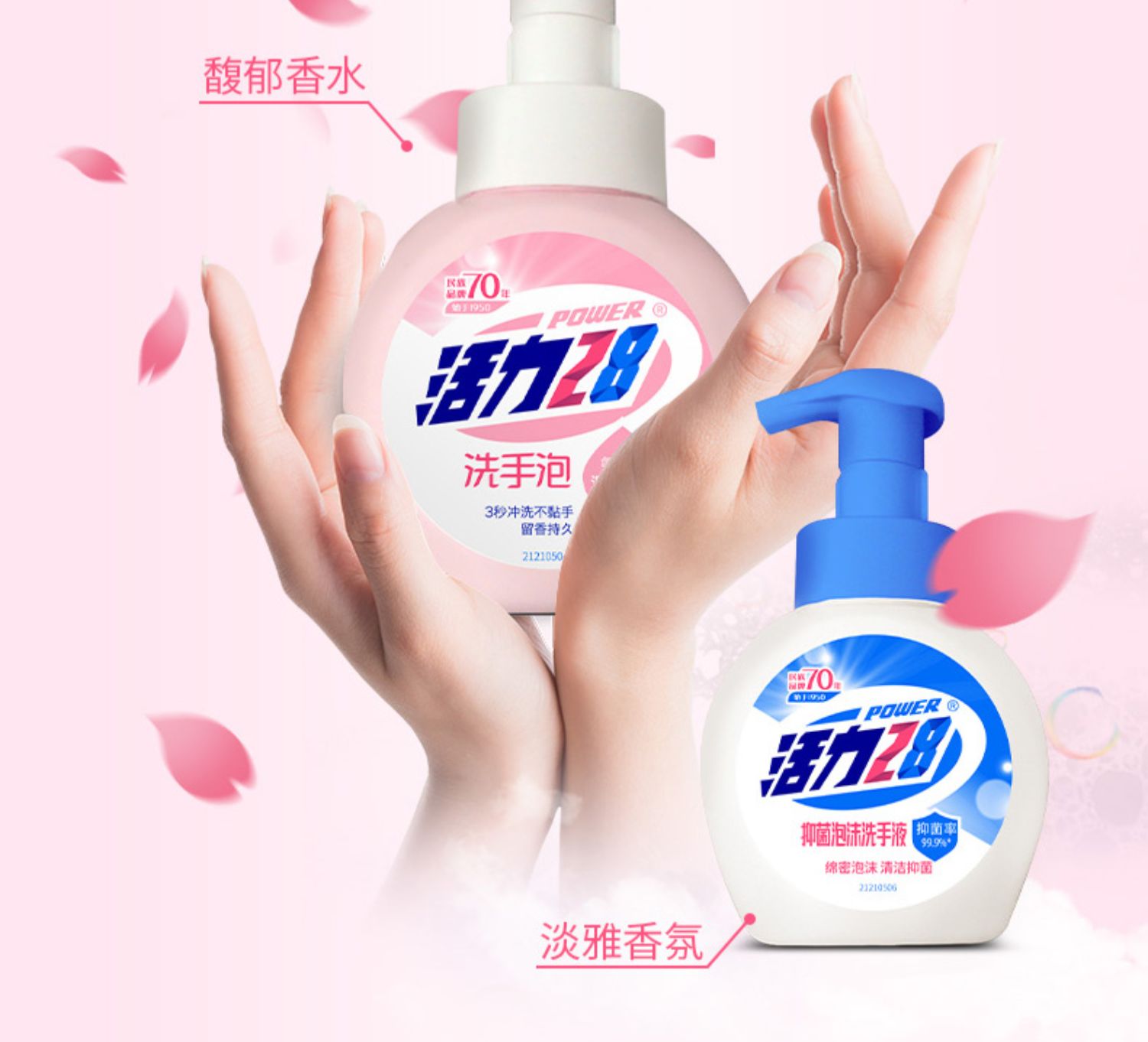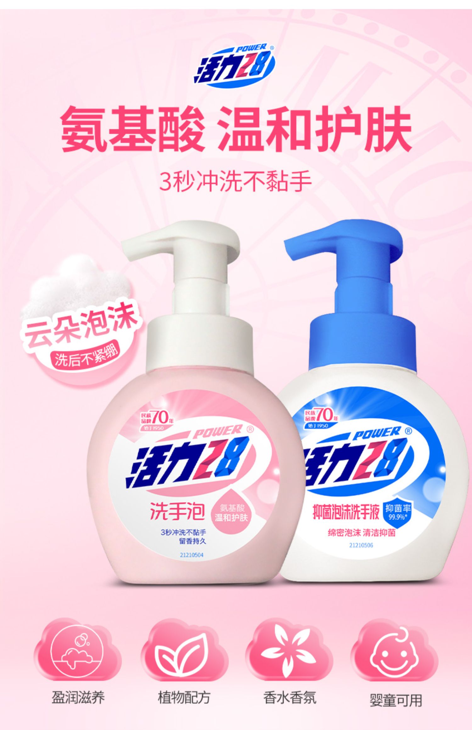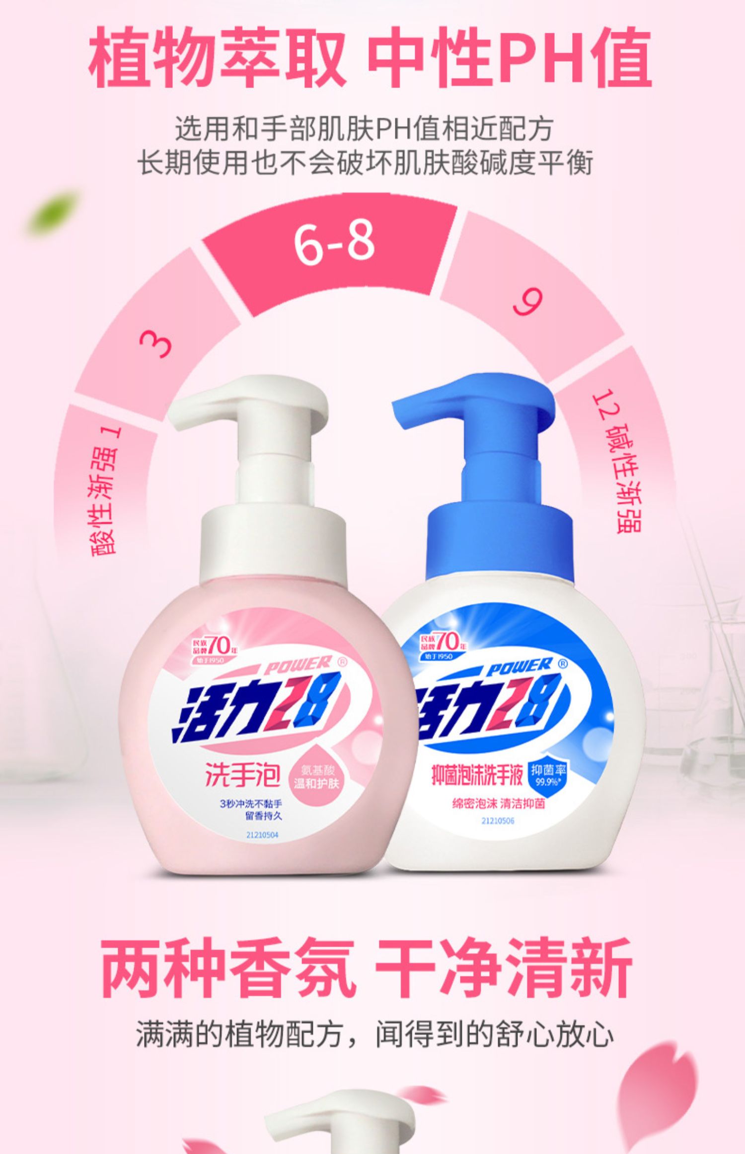 【可凑单】活力28杀菌消毒泡沫洗手液258g*5