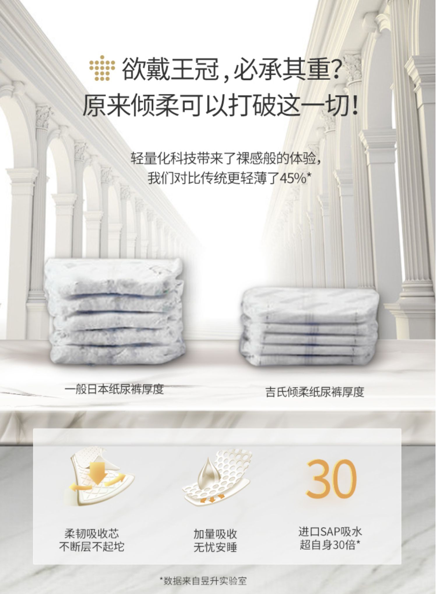 【可叠加300-30,预估到手低至57元】吉氏倾柔纸尿裤,亲肤透气,超级吸水,不起坨,不返渗,不红屁屁,宝宝安睡一整夜,宝妈必囤。