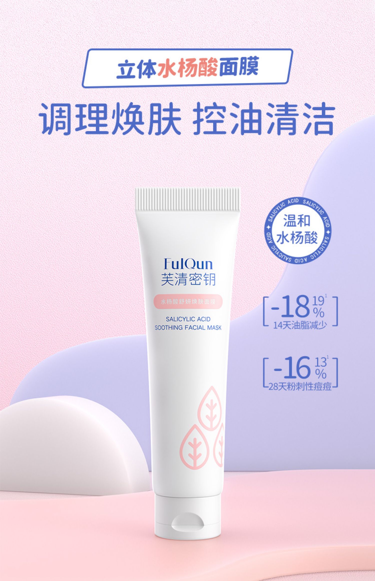 【下单送面膜刷】芙清密钥水杨酸祛痘涂抹面膜30g,摆脱油痘肌,从而清理毛孔、粗大,肤色暗黄,皮肤粗糙,黑头闭口等问题,专利控油肽,守护油痘肌!