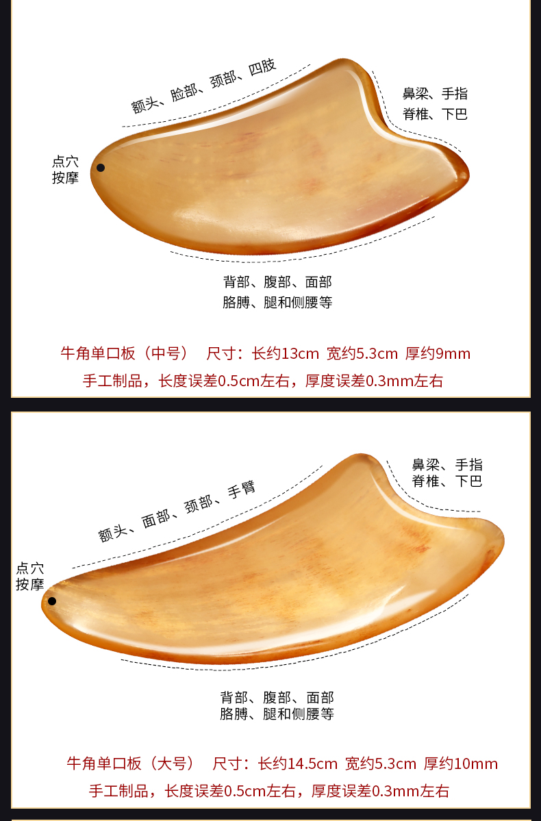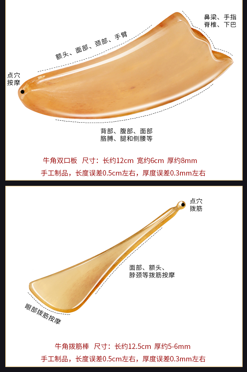 脸部美容黄牛角双口板,刮脸神器,面部提拉,美容按摩,全身刮痧,实用有用坚持用,越活越年轻