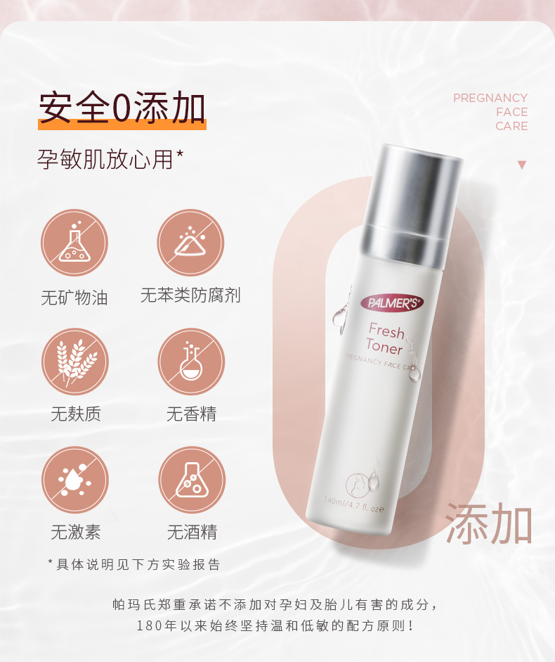 美国palmers帕玛氏孕妇专用护肤品叶酸补水保湿舒缓精华水喷雾,0.2mm喷头口径,出雾细腻,有效补水舒缓肌肤!