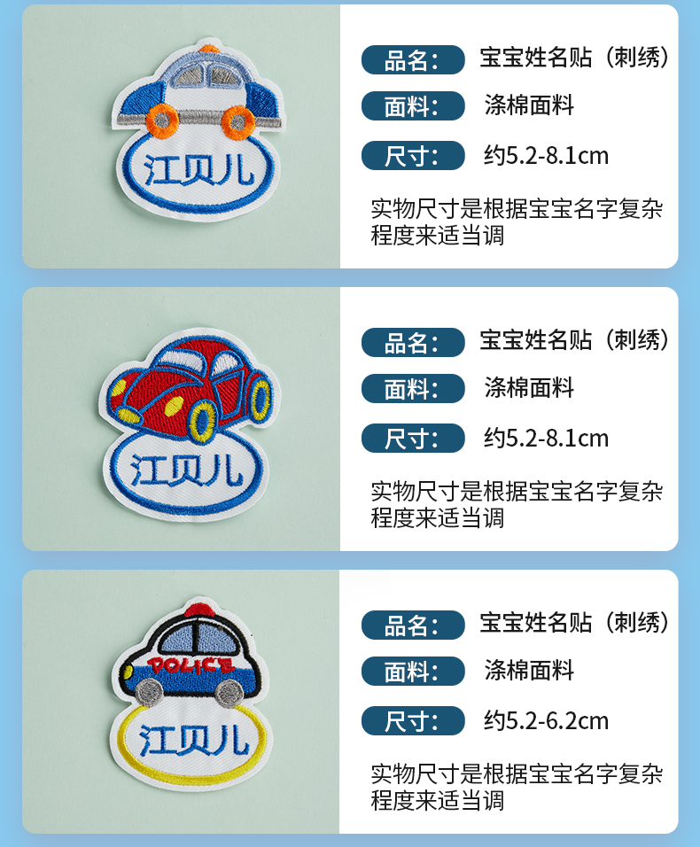 【52个5.8】名字贴刺绣贴幼儿园姓名贴