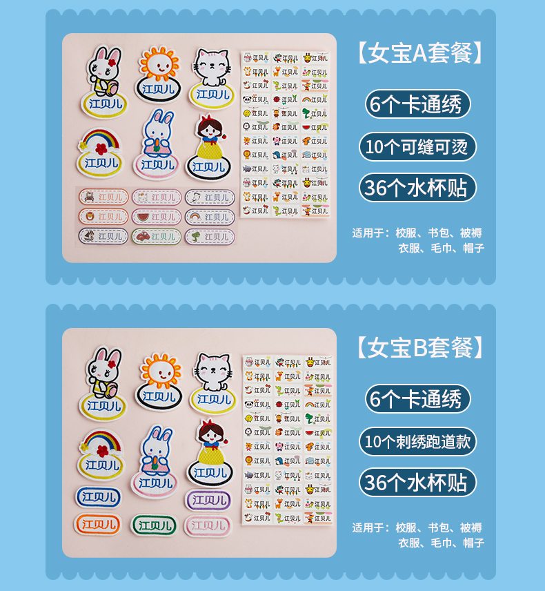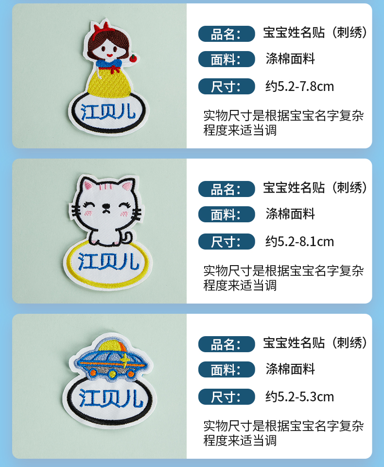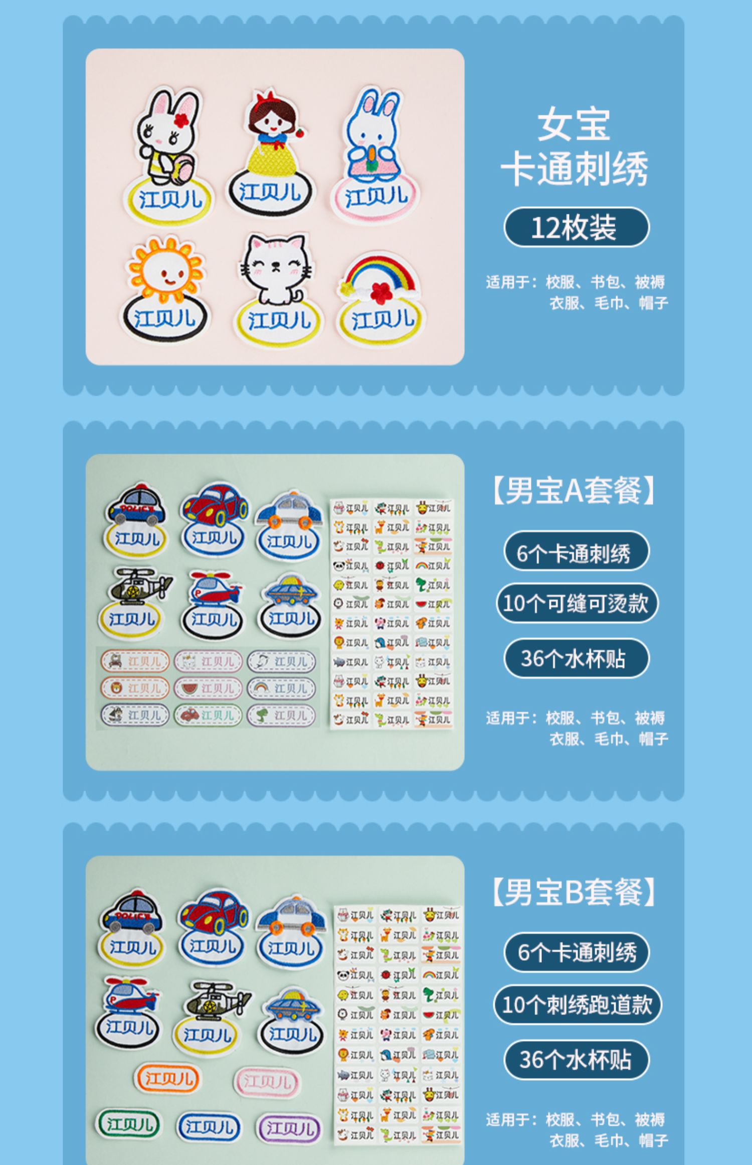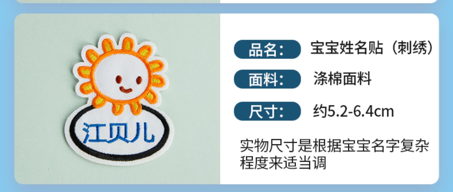 【私人订制~下单备注姓名】宝贝姓名贴,先进技术,激光数码绣名字,字迹清晰,防水水洗不掉色耐用,可重复使用,健康环保,美观实用,超值划算~