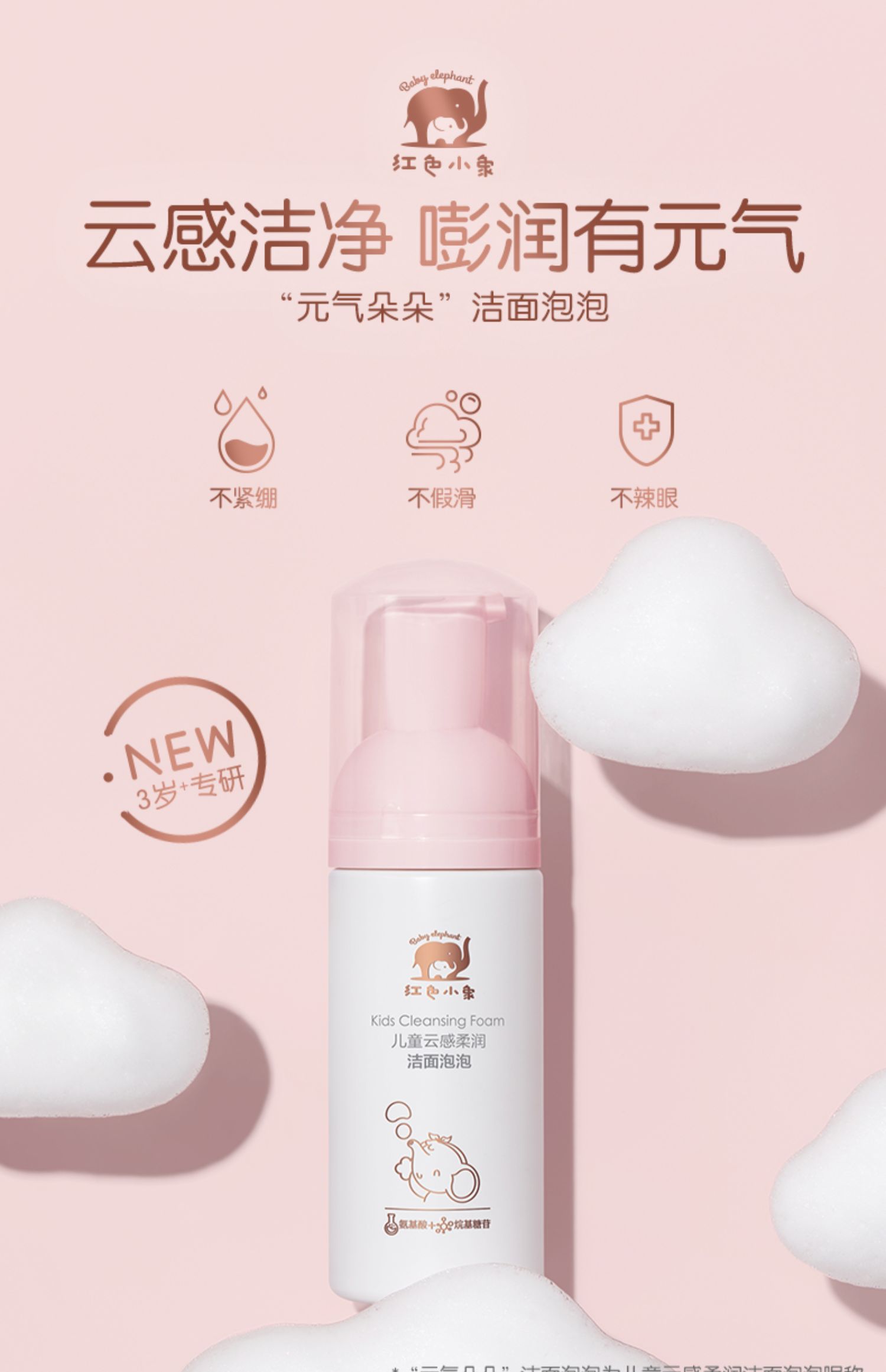 大牌给到这个价!红色小象儿童泡泡慕斯洁面!专为男女儿童设计,不紧绷,不假滑,不辣眼,氨基酸洁面更放心,净透不紧绷,弱酸无泪,入眼无忧,元气朵朵,特调香氛!