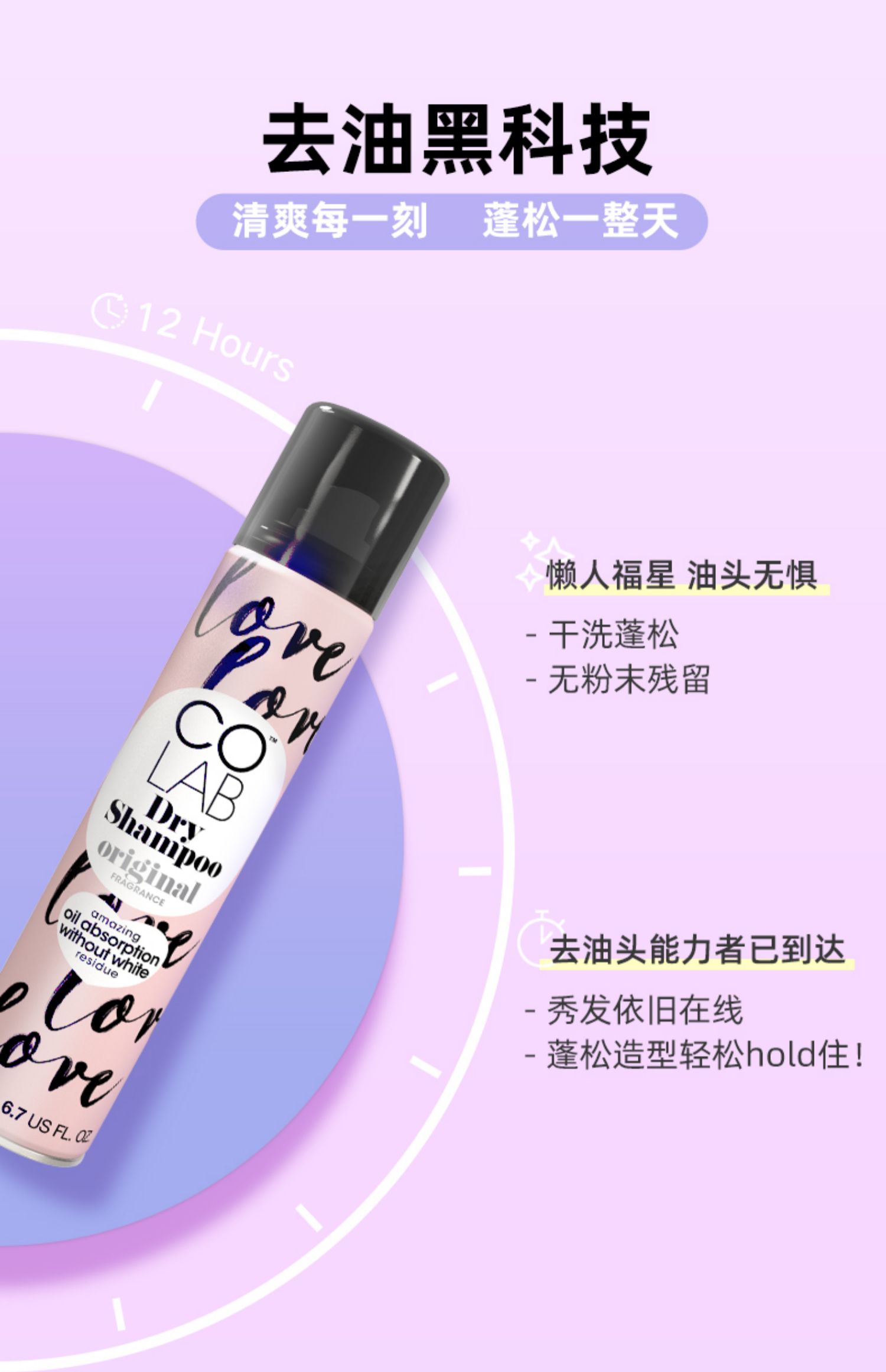 Colab干发喷雾免洗神器200ml,干发喷雾界的独角兽,吸油力max,隐形配方,无白色残留,淡淡的香味好闻,简直又是油头救星~
