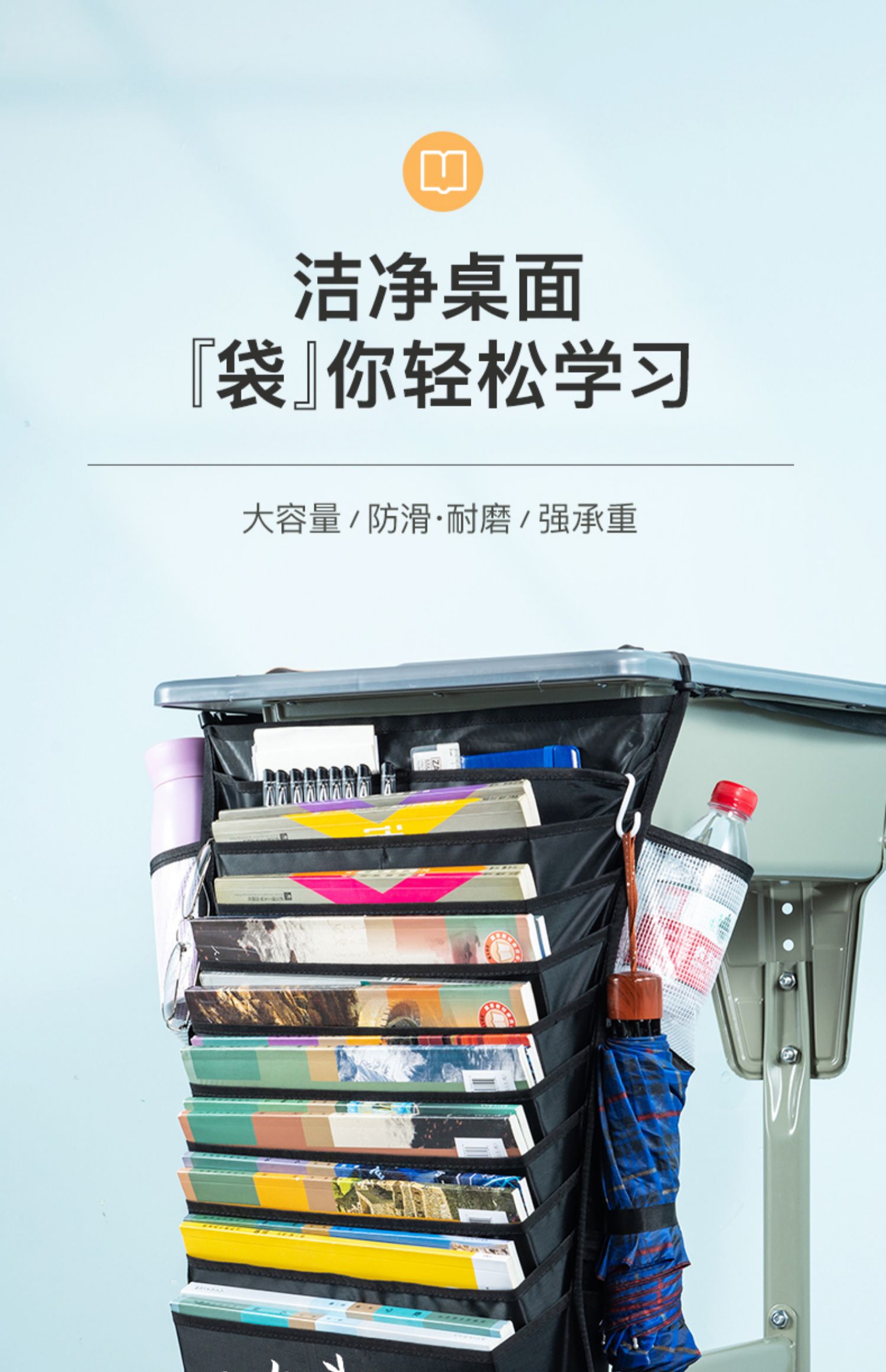 孩子书本太多放桌子上太乱?你需要多功能桌边收纳袋!采用优质材料,防水耐磨!多层大容量,1层可放4-5本书,将书通通放进去,解放书桌,整洁又干净,快给孩子备一个!
